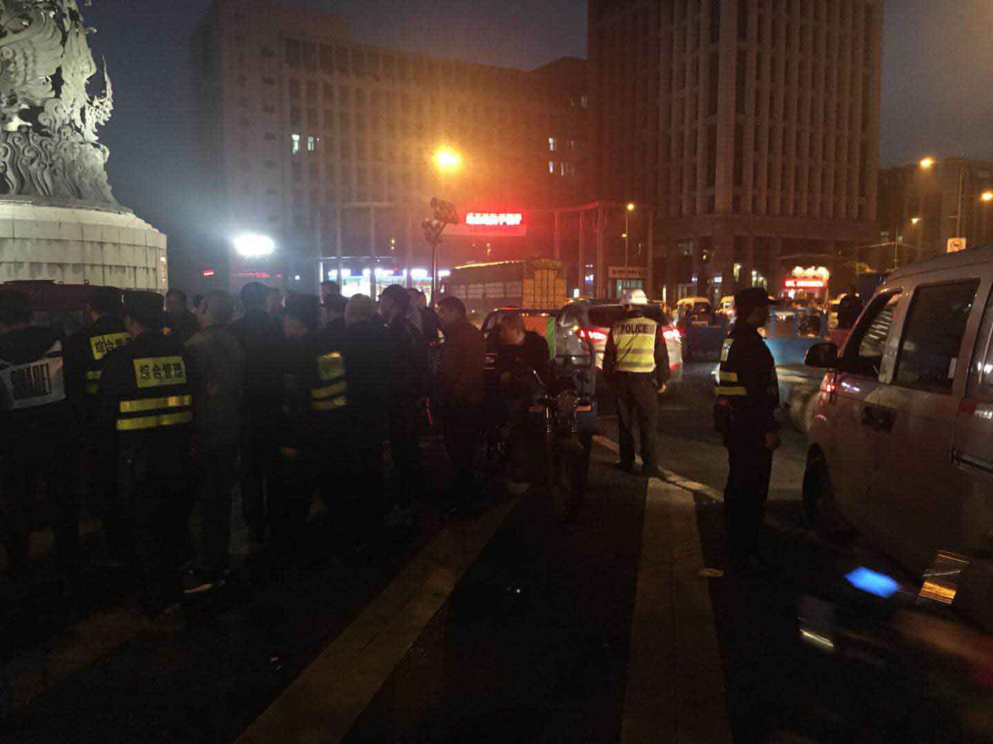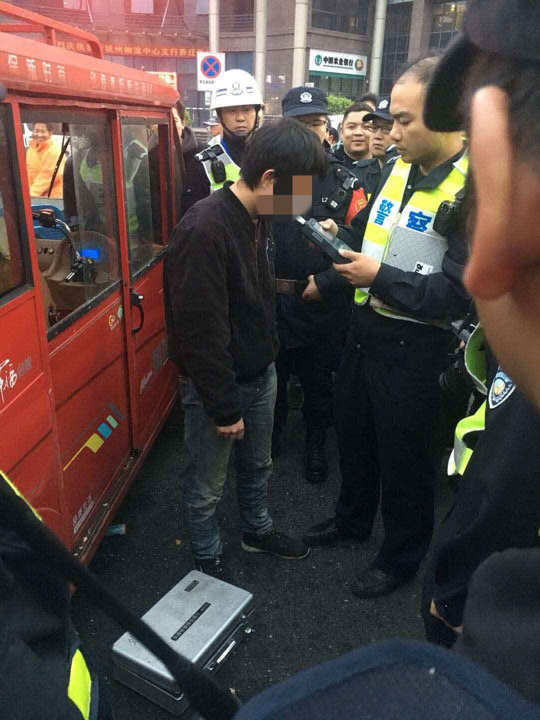 凌晨04:05,一輛機(jī)動車和一輛非載客三輪車發(fā)生刮擦,造成道路擁堵。良渚項(xiàng)目隊(duì)長張耒林立即報(bào)告值班民警,并帶領(lǐng)隊(duì)員趕到現(xiàn)場,一方面維護(hù)現(xiàn)場秩序,另一方面對擁堵路段進(jìn)行車輛疏導(dǎo)。當(dāng)時,肇事三輪車駕駛員滿身酒氣,不斷地去拉扯和辱罵機(jī)動車駕駛員,對勸阻的特保隊(duì)員同樣辱罵、推搓,并語言威脅。
