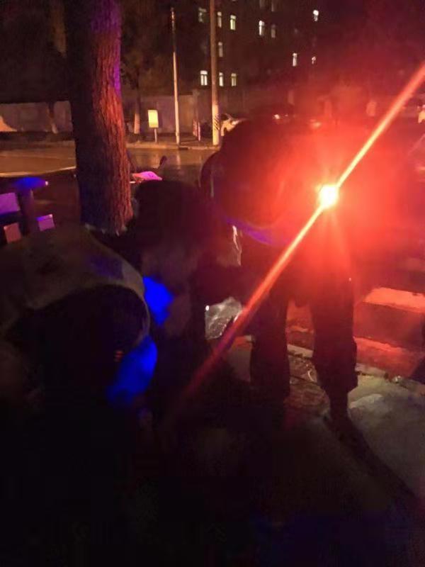小余和小唐隊(duì)員帶著老奶奶走出小區(qū)黑暗處,第一時(shí)間上報(bào)帶隊(duì)組長并拍照片取證及時(shí)聯(lián)系警察通知她的家人。沒過多久警察來了,隊(duì)員將老人移交給了民警。