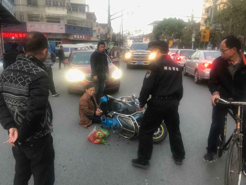 當(dāng)天下午16:00左右,黃路社區(qū)隊員秦泗彬、湯紅強(qiáng)、朱清科、劉偉、陶永錦等在上班巡邏期間,發(fā)現(xiàn)在川南奉公路振興路路口10米處發(fā)生一起轎車與電瓶刮撞事故,該事故造成道路封堵。正是下班高峰期,五名隊員立馬下車幫助當(dāng)事人報警,并勸導(dǎo)兩名當(dāng)事人拍好照片,取好證,讓當(dāng)事人車輛??柯愤?。接下來,五名隊員指引擁堵車輛有序通行,使交通慢慢恢復(fù)暢通。