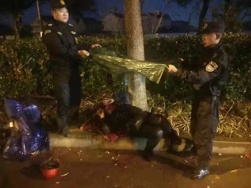 當天下午17:00左右,王飛,劉兵,周支鴻,張亮亮,馬勇飛等隊員在下班途中,經(jīng)南團公路到達東四灶港橋附近時,發(fā)現(xiàn)路邊綠化帶上一行人連同電瓶車倒在地上。隊員們立即停車下去查看,發(fā)現(xiàn)是一位老太太,因雨天路滑騎車摔倒在地上。當時其嘴部鮮血較多,語言表達不清。根據(jù)當時情況,隊員第一時間撥打了110和120急救電話,然后上前與老人一番溝通,最終通過老人的手機與其家人取得了聯(lián)系。在等待救援和家人的過程中,老人躺在地上哭泣。因天氣一直下著小雨,隊員拿來雨衣?lián)卧诶先松砩蠟槠鋼跤?,守護在老人身邊,直至警察、急救人員、家屬到現(xiàn)場后,合力將老人送到救護車上。