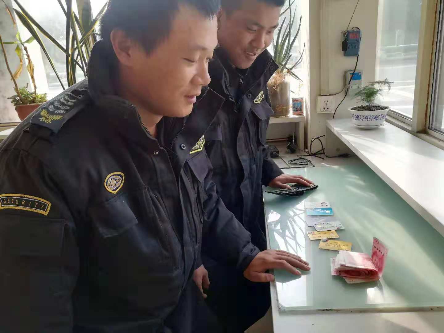 到了崗?fù)?,在甲方?duì)長(zhǎng)和我方值班領(lǐng)導(dǎo)的見(jiàn)證下,打開(kāi)錢(qián)包,里面有現(xiàn)金1千元左右,身份證1張,銀行卡4張,1張公交卡。經(jīng)過(guò)一番調(diào)查,半小時(shí)左右找到了錢(qián)包的失主,經(jīng)過(guò)確認(rèn)無(wú)誤后,將錢(qián)包交給了當(dāng)事人。