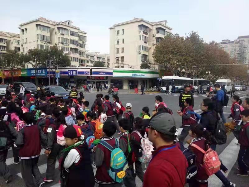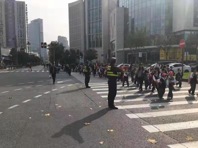 2018年11月30日14:20左右,在浦東新區(qū)福山路與張楊路路口有一道亮麗的風(fēng)景線,宗保駐陸家嘴梅園市容的特保正在護(hù)送600名小朋友過馬路,那陣仗真是浩浩蕩蕩。