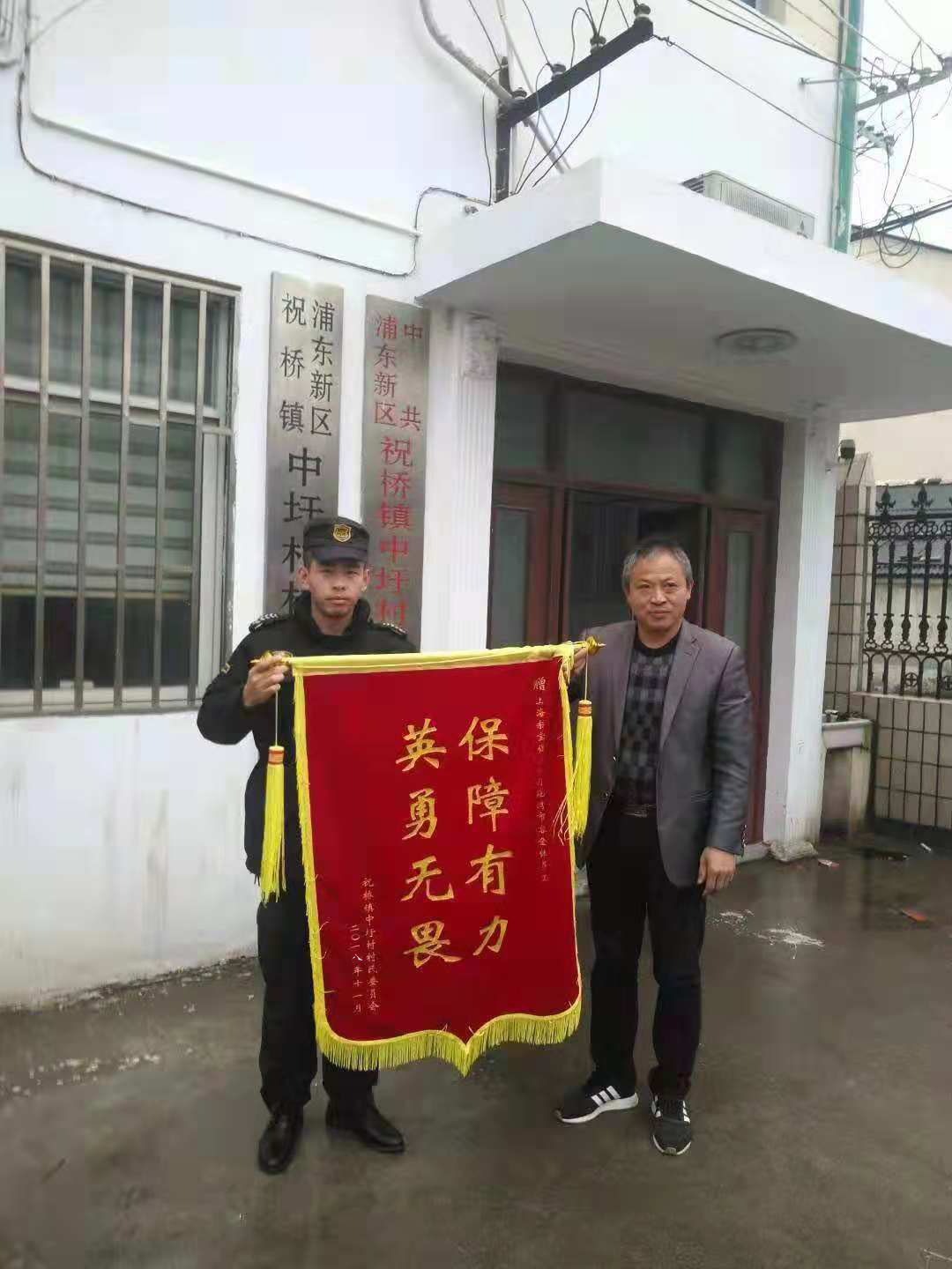 2018年11月30日,祝橋鎮(zhèn)中圩村村長將手中的錦旗贈予宗保駐祝橋市容項目隊員手上。錦旗上面赫然寫著“保障有力,英勇無畏”幾個金燦燦的大字,感謝宗保公司祝橋市容項目保障火災現場秩序及英勇協助救火。