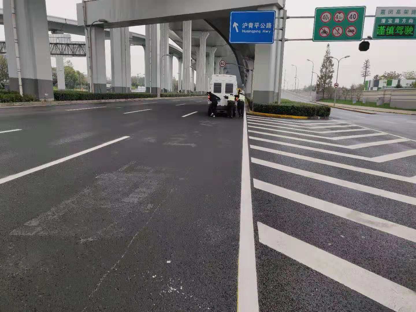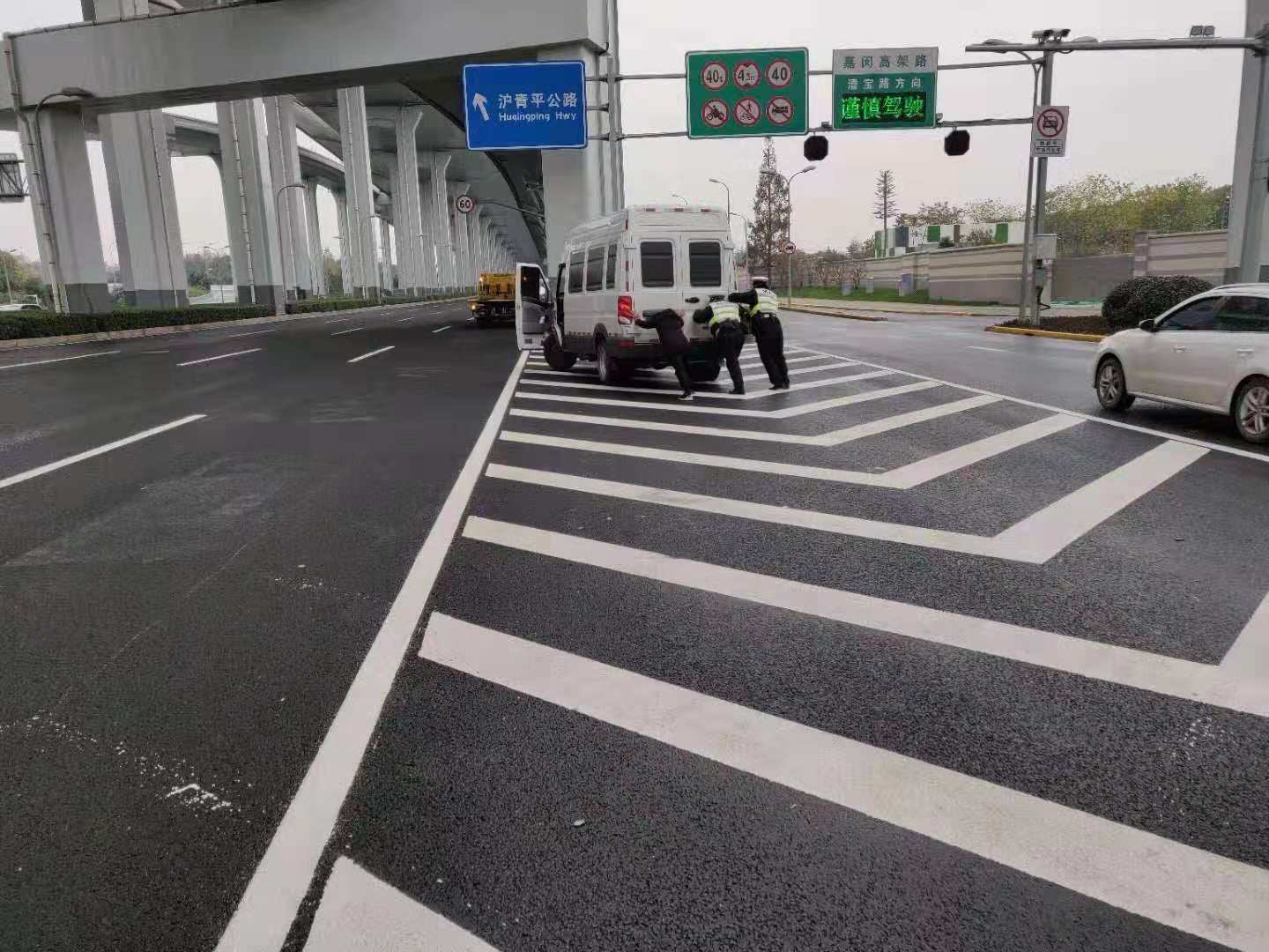 2018年12月9日,宗保駐閔行輔警項目隊員,將拋錨白色依維柯迅速撤離機動車道,保障道路通暢。