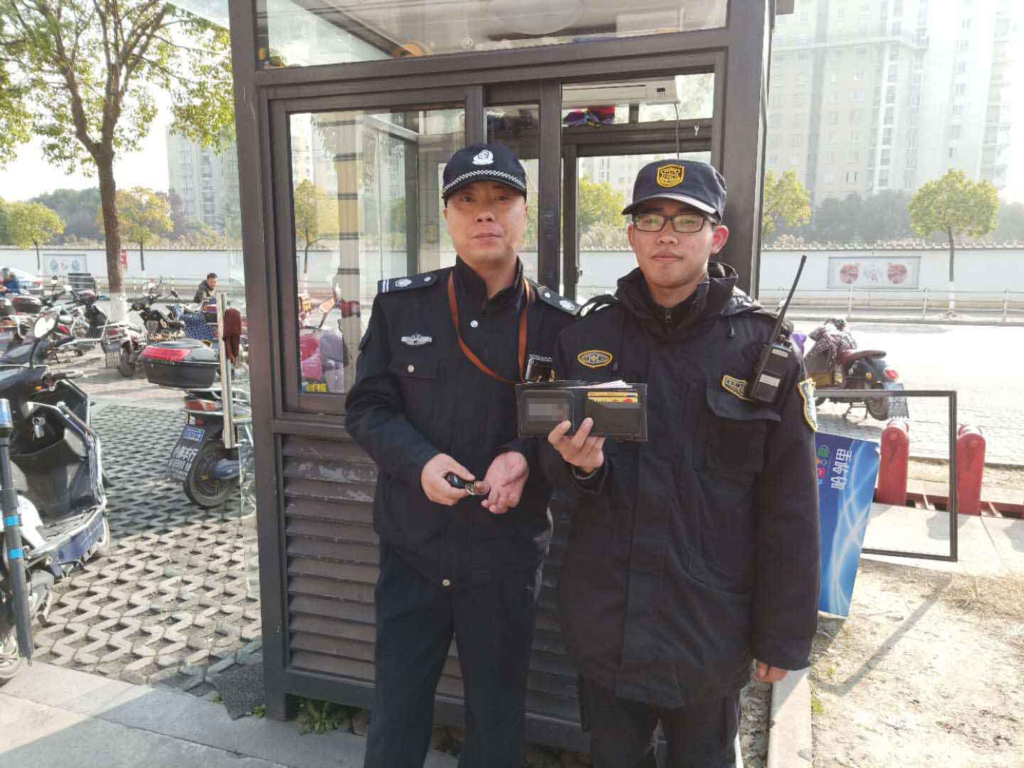 2018年12月17日11:40,宗保駐周浦海印項(xiàng)目隊(duì)員李玉斌在上崗期間,撿到一個黑色錢包。隊(duì)員在現(xiàn)場等待二十分鐘左右,無失主前來認(rèn)領(lǐng)。立即上報(bào)隊(duì)長及區(qū)域經(jīng)理,并打電話報(bào)警。周東所民警到達(dá)現(xiàn)場后,經(jīng)確認(rèn)錢包內(nèi)有現(xiàn)金1630元,身份證一張,銀行卡三張,地鐵卡一張,隊(duì)員將錢包上交民警。