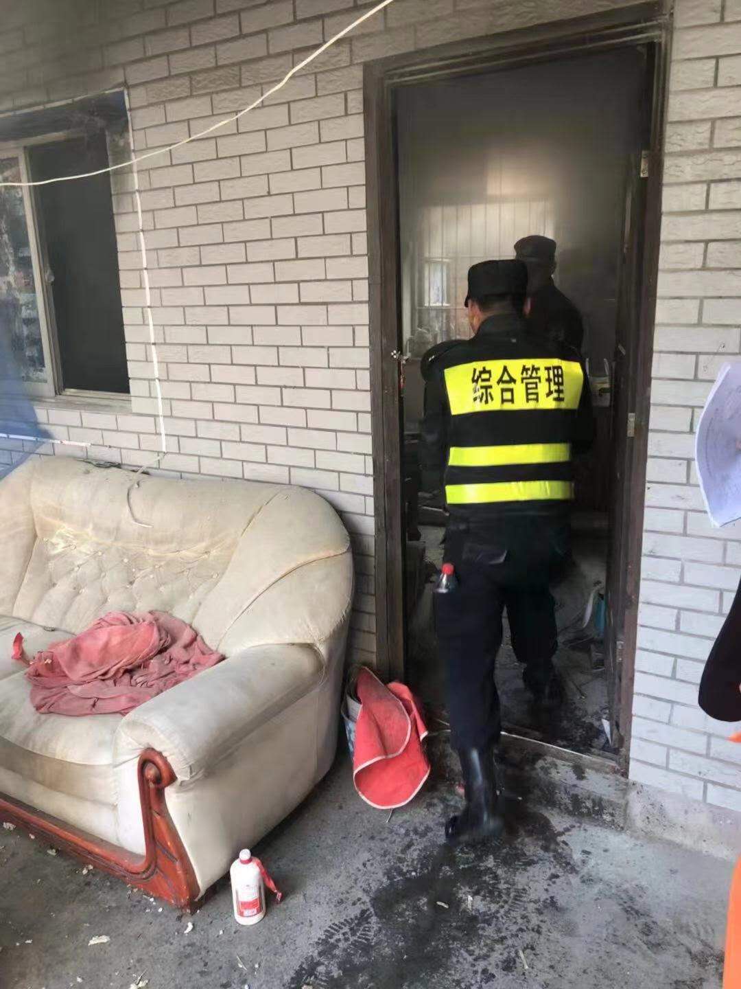 當(dāng)天下午14:31分,當(dāng)陳超正在進(jìn)行日常巡邏時(shí)。當(dāng)巡邏至石鴿里163號(hào)附近時(shí),隱約看見(jiàn)有亮光,憑著職業(yè)的敏感性,立即向發(fā)光處靠近。原來(lái)是163號(hào)居民房間里著火了,火勢(shì)蔓延迅速,如果不及時(shí)撲滅,后果不堪設(shè)想。陳超立即將該情況報(bào)告隊(duì)長(zhǎng),并請(qǐng)求支援。不到5分鐘,隊(duì)長(zhǎng)及隊(duì)友拿著滅火器材來(lái)了,并通知綜治科領(lǐng)導(dǎo)李賢海、李國(guó)華到現(xiàn)場(chǎng)。陳超告知居民家中無(wú)人應(yīng)答,情況緊急,隊(duì)長(zhǎng)下令把門(mén)鎖撬開(kāi),先救火。隊(duì)員有的拿滅火器;有的從旁邊打水投入到滅火行動(dòng)中。經(jīng)過(guò)隊(duì)員和城管隊(duì)員大家共同的努力,火勢(shì)終于有所控制,并被撲滅。