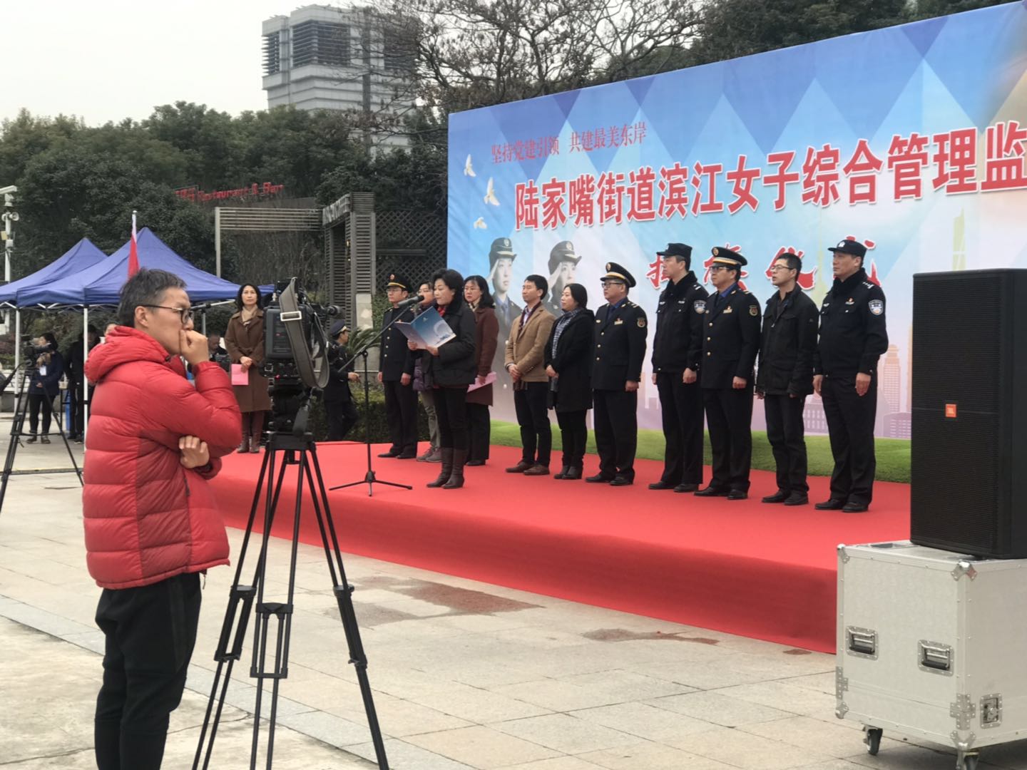 然后由陸家嘴街道街道辦事處主任、綜管辦主任鄧亮同志宣讀《關(guān)于成立陸家嘴街道濱江女子綜合管理監(jiān)察隊(duì)的決定》。