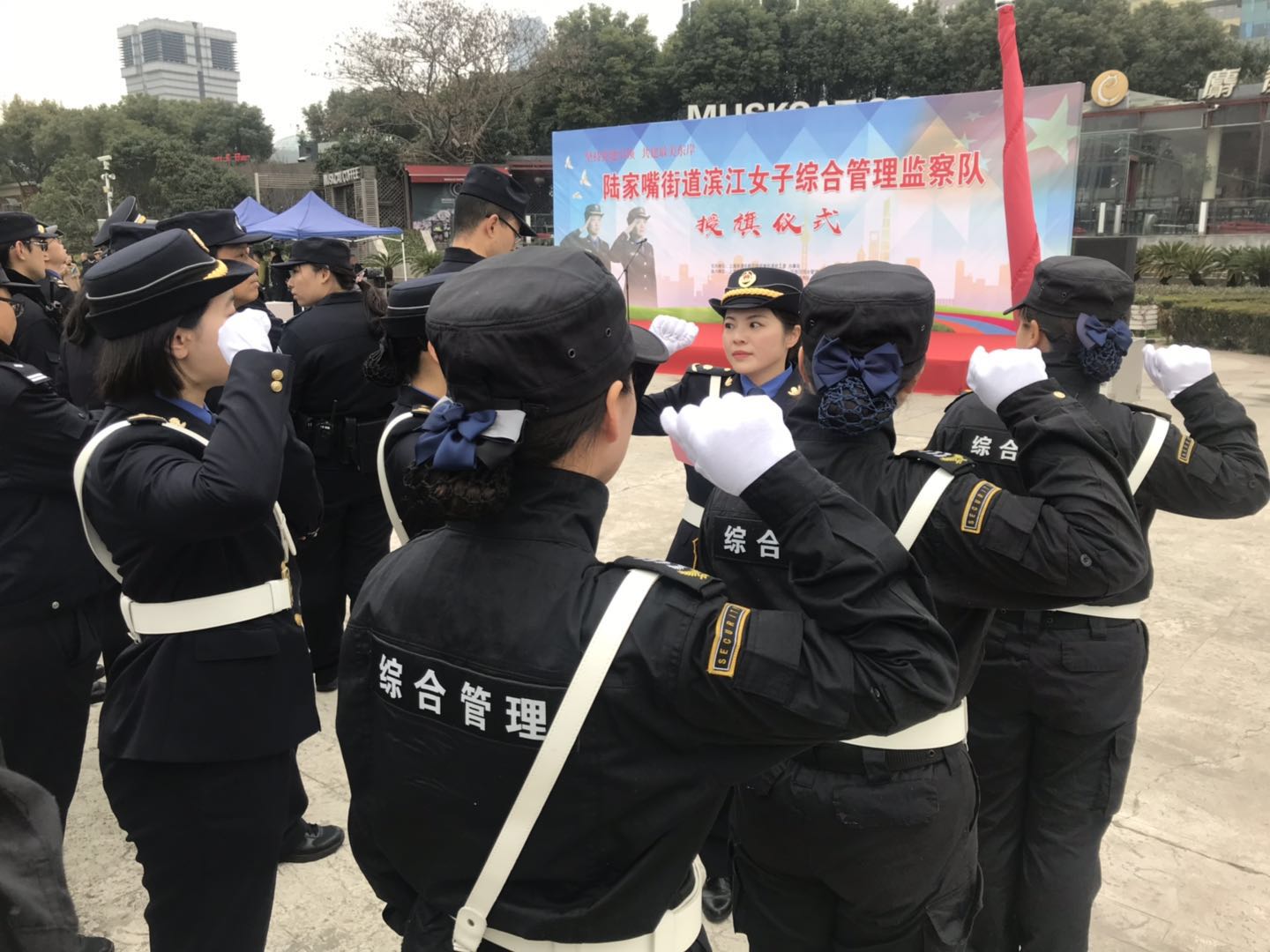 由宗保保安公司駐陸家嘴項(xiàng)目6名女性隊(duì)員與陸家嘴城管女隊(duì)員共同組建12人女子綜合管理監(jiān)察隊(duì)。這支女子監(jiān)察隊(duì),是上海市組建的第一支女子綜合管理監(jiān)察隊(duì)。