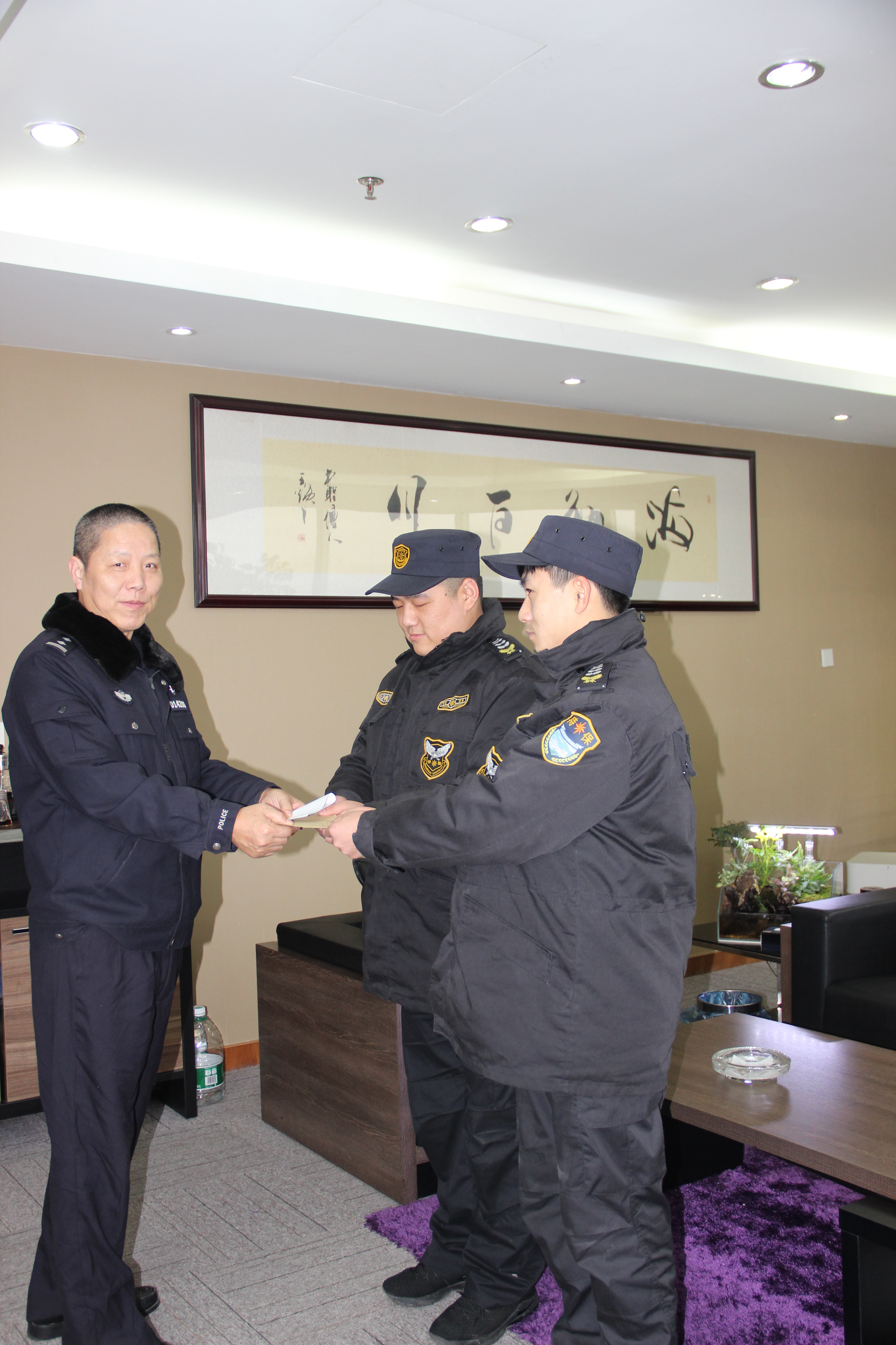 2019年1月9日下午13:30,上海市浦東新區(qū)保安協(xié)會(huì)領(lǐng)導(dǎo)來(lái)到宗保公司,看望國(guó)慶期間救助游客的特保隊(duì)員,并送上慰問(wèn)金。