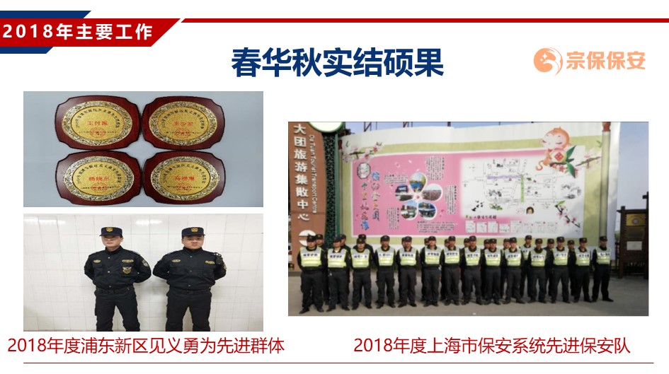 剛剛過去的2018年,宗保人過得很充實、走得很堅定。我們深入學習貫徹習近平總書記系列重要講話精神,面對進博會安保工作,聚焦精細化管理,對標的城市更有序、更安全、更干凈總目標,團結(jié)奮進、埋頭苦干,為滬浙皖經(jīng)濟社會發(fā)展做出了積極貢獻。