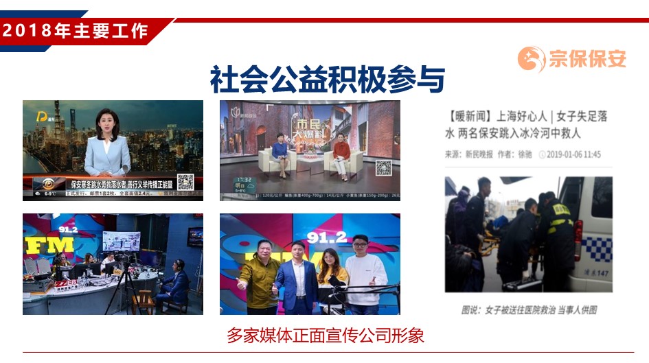 酒香不怕巷子深,由風做介質(zhì);好事照樣傳千里,靠媒體傳播。古核桃拍賣,助力漾濞,積極競拍,精準扶貧,當仁不讓;殘疾人公益電影拍攝,主動參與,大力投入。2018年,《文匯報》、《新民晚報》、《保安與技防》、浦東電視臺、鄭州交通廣播電臺等多家媒體相繼報道公司的正面形象。媒體紛至而來,既是社會各界對宗保人踏實工作、文明值勤的認可,更是宗保企業(yè)文化這壇佳釀不斷發(fā)酵、香飄久遠所致。