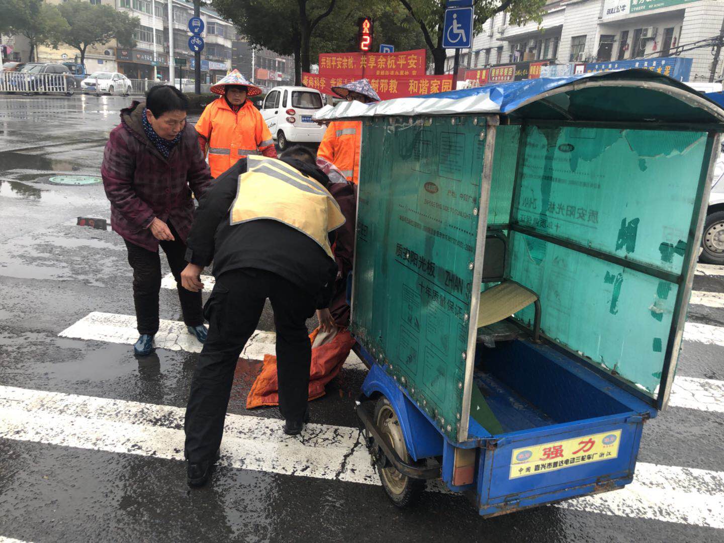 2019年1月15日上午9點(diǎn)30分左右,浙江民泰駐星橋市容項(xiàng)目隊(duì)長(zhǎng)陳佳寶和隊(duì)員孫慧洋在藕花洲大街巡查時(shí),發(fā)現(xiàn)一名老婆婆由于雨天路滑,電瓶車側(cè)翻壓在身上,無法動(dòng)彈躺在路上,無人幫忙。