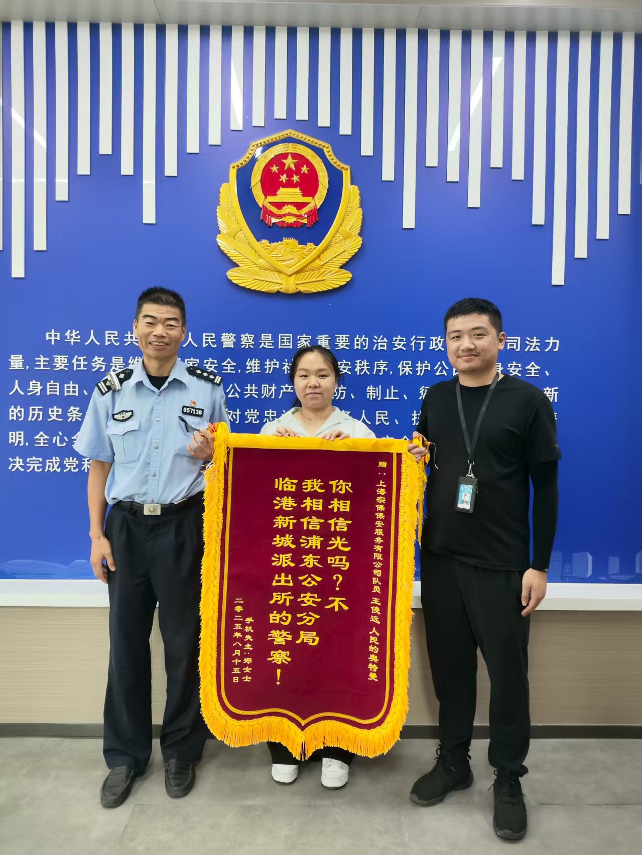 近日,宗保公司駐浦東新區(qū)臨港新城派出所輔助項目員工王俊遠(yuǎn)因協(xié)助民警成功幫助市民找回遺失手機,獲得市民鄭女士贈送的錦旗贊揚,被譽為“人民的奧特曼”。