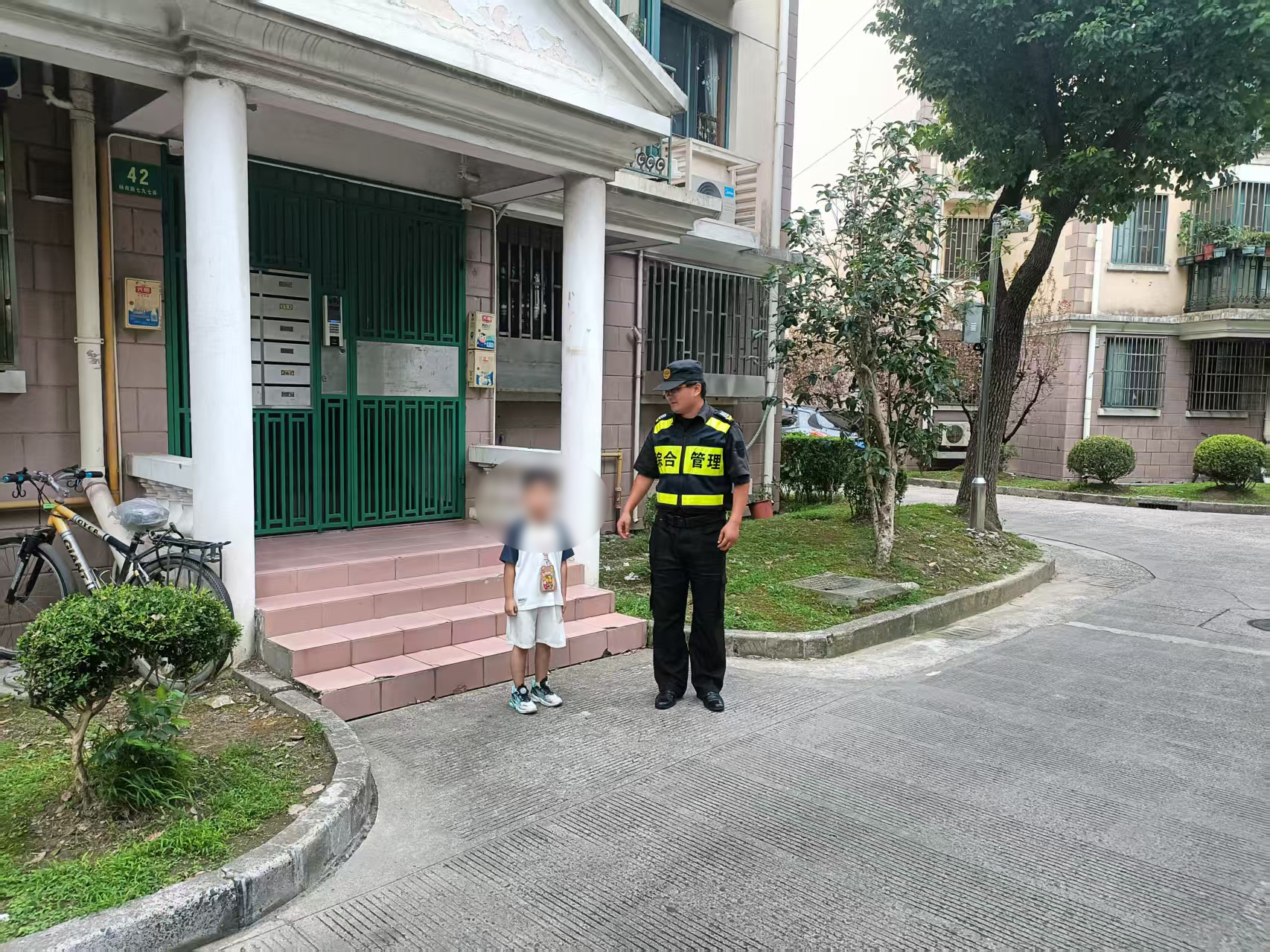 為盡快幫助男孩與家人團聚,方勇迅速呼叫附近同事共同展開排查。大家分頭走訪周邊小區(qū),重點尋找門牌號為“42號”的住戶。終于在純翠苑小區(qū)門口,值班保安提供關鍵線索:剛剛有一戶居住在楊南路某弄42號的居民前來求助,稱家中孩子走失。