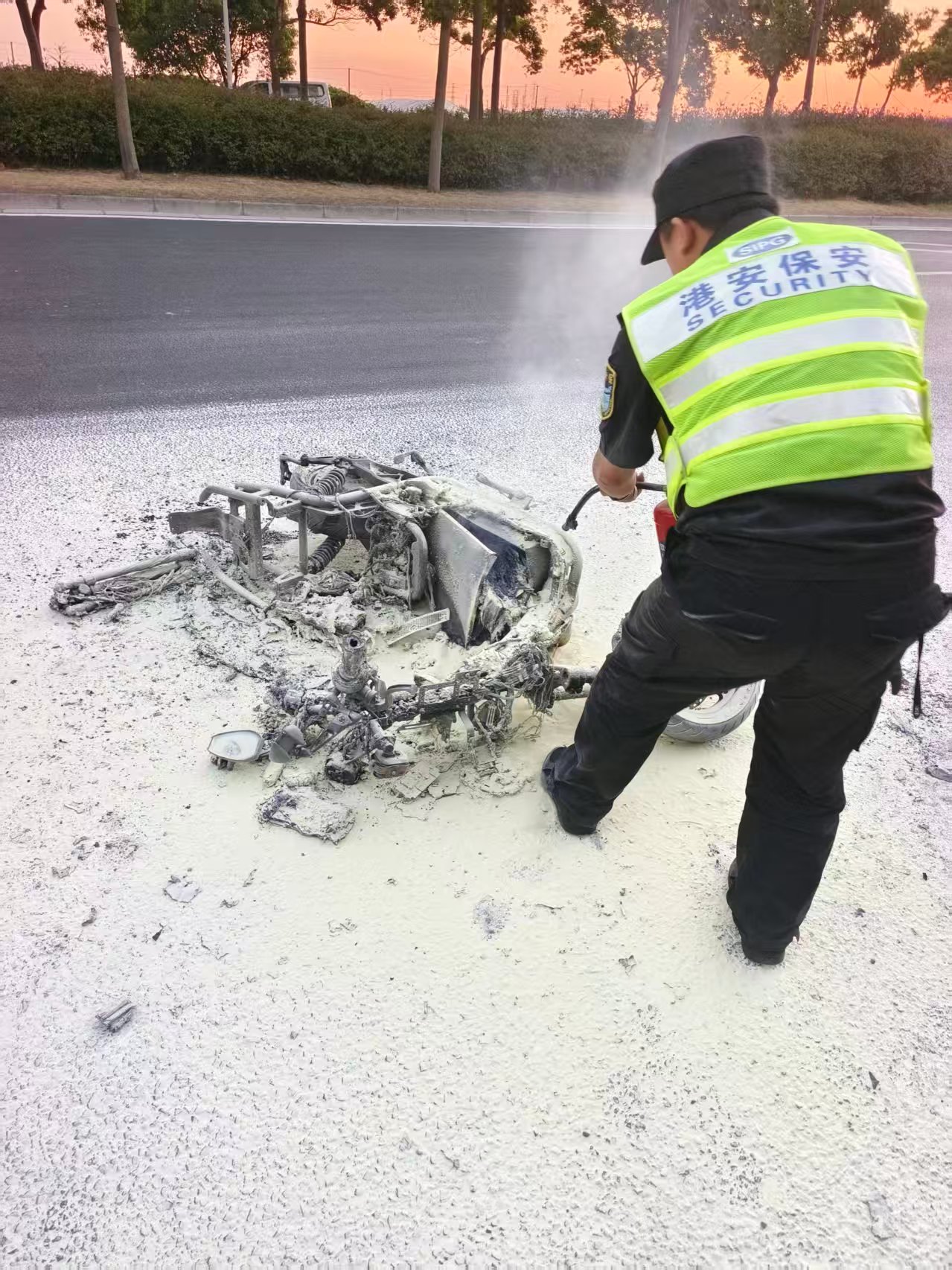 9月6日凌晨,宗保公司駐浦東新區(qū)臨港危險(xiǎn)品倉庫項(xiàng)目員工執(zhí)勤期間,迅速應(yīng)對(duì)一起突發(fā)電瓶車起火事件,有效避免了可能引發(fā)的重大安全事故。