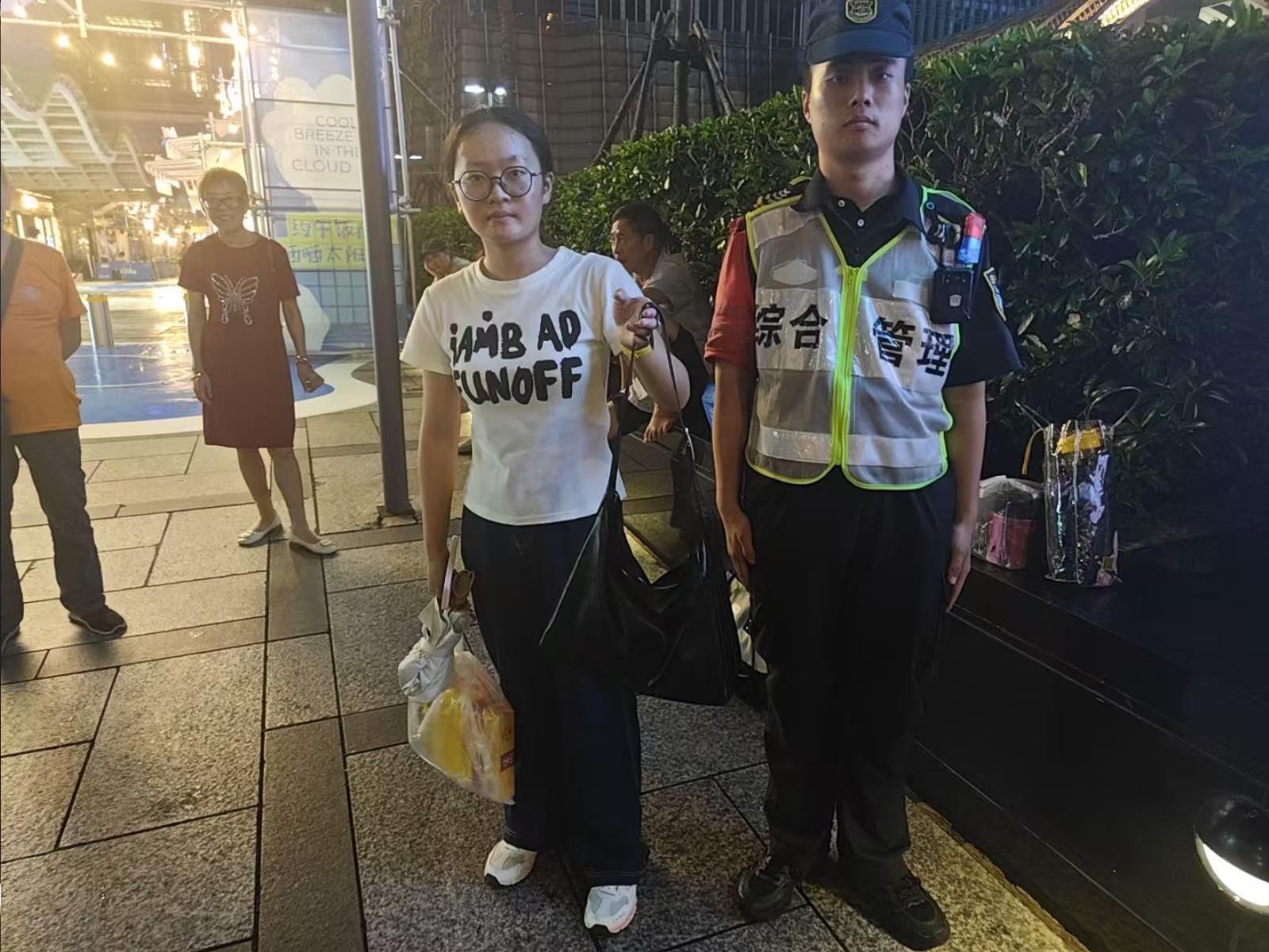 大約過了15分鐘,一位身穿白色T恤的女士趕到現(xiàn)場尋找挎包。王澤星問清挎包顏色、包內(nèi)物品,確認其是失主后,就把手提包和其中物品一并歸還給了她。女士提著挎包,連連向王澤星道謝。