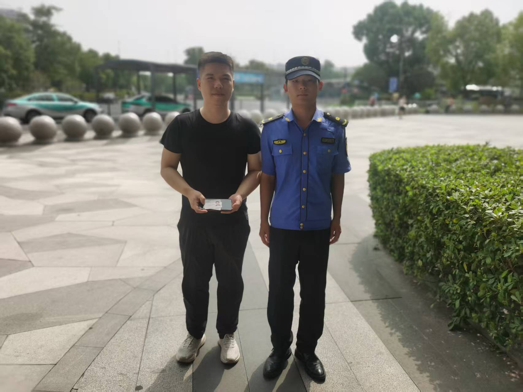 9月30日10:20,浙江民泰公司駐杭州市臨平區(qū)新城市容項目員工原付凱在臨平南站北廣場巡查時,撿到一部華為手機、一張身份證和一張社???。因一時無法聯(lián)系到失主,原付凱便將情況報告了項目負責人,并按要求在原地邊巡查邊等待。