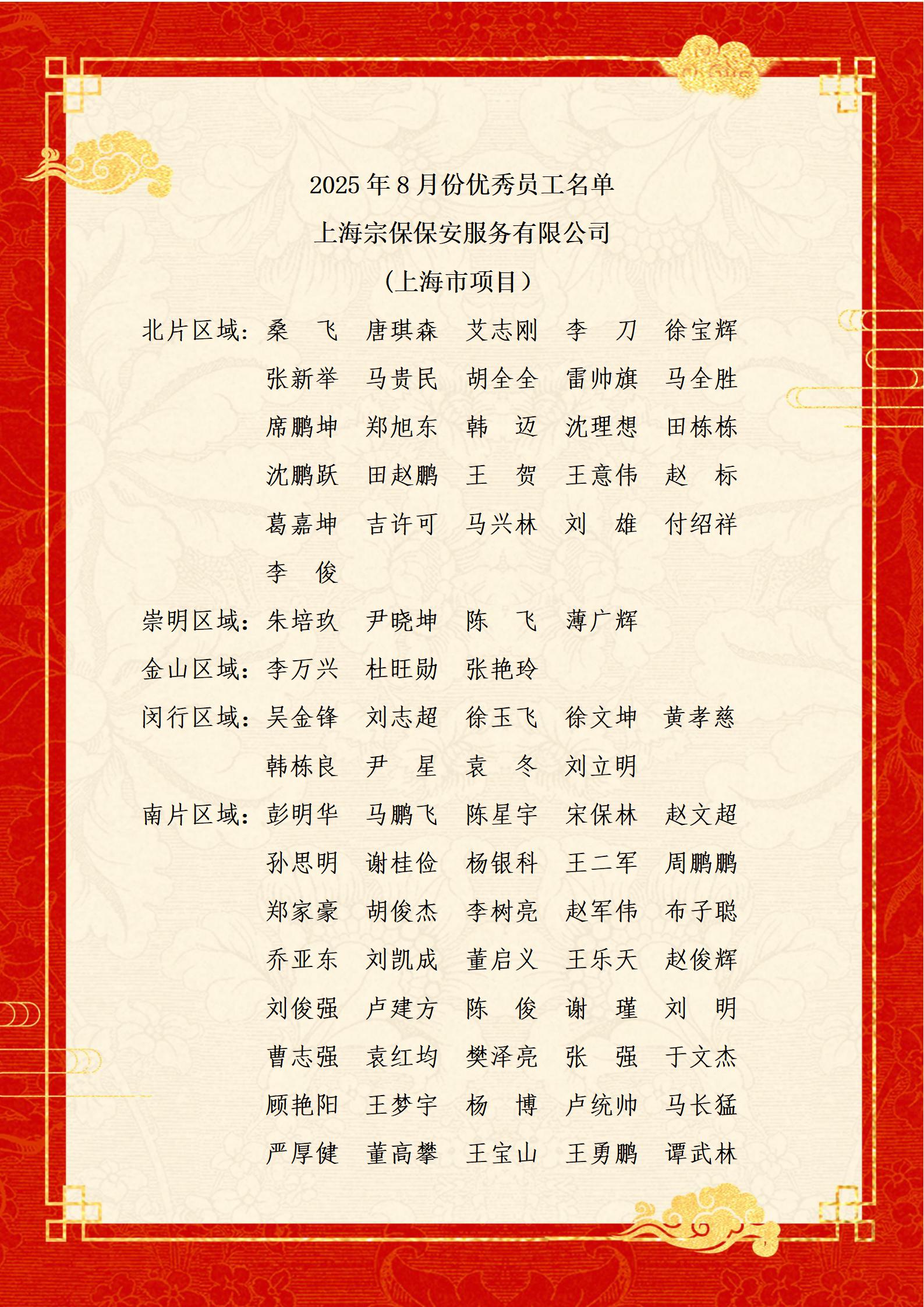 8月份,公司廣大員工根據(jù)甲方的任務(wù)要求,按照公司的部署安排,認(rèn)真踐行公司“規(guī)范經(jīng)營 誠信為本 服務(wù)至上”的發(fā)展理念,頂著烈日冒著酷暑,堅守崗位勤勉作為,助力完成了上海藍(lán)鯨世界購物中心開業(yè)交通秩序維護(hù)等多項(xiàng)大型活動安保任務(wù),全力配合甲方做好了城市管理輔助、治安巡邏聯(lián)防、物業(yè)服務(wù)保障、生態(tài)環(huán)境保護(hù)、高鐵線路巡防等工作。期間,涌現(xiàn)出了一批盡心履責(zé)、崗位建功、拾金不昧、熱心助人的優(yōu)秀員工和先進(jìn)典型。
