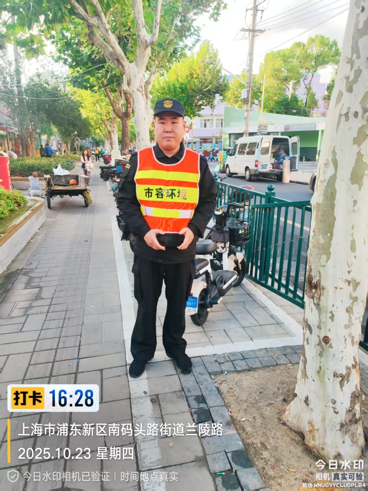 10月23日16:28,宗保公司駐浦東新區(qū)南碼頭市容項目員工丁曉樂在蘭陵路值勤時,撿到一部蘋果手機。報告項目負責(zé)人后,丁曉樂便在原地邊值勤邊等待失主。