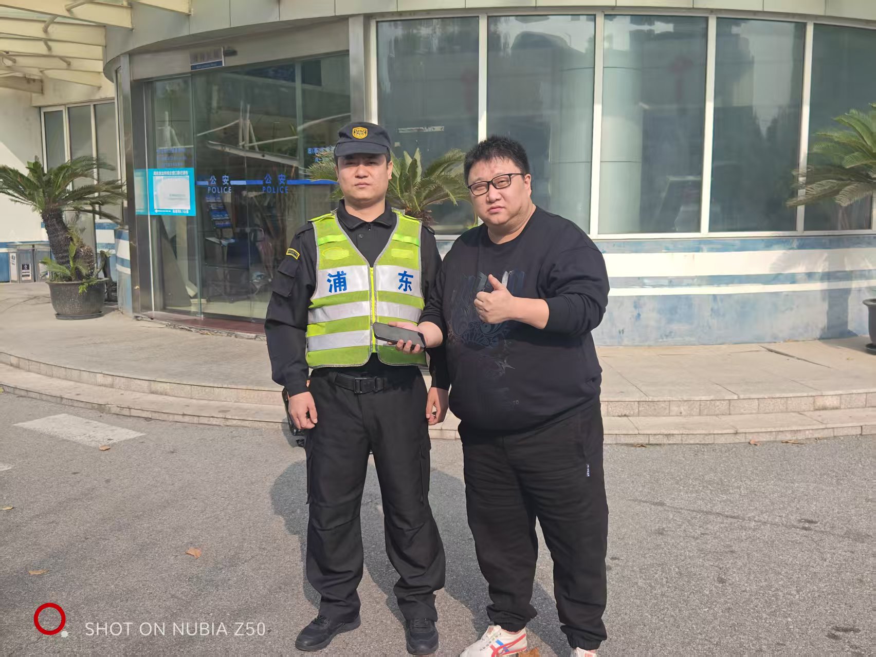 宗保公司駐浦東新區(qū)周東派出所輔助項目員工張飛虎撿到蘋果手機歸還失主