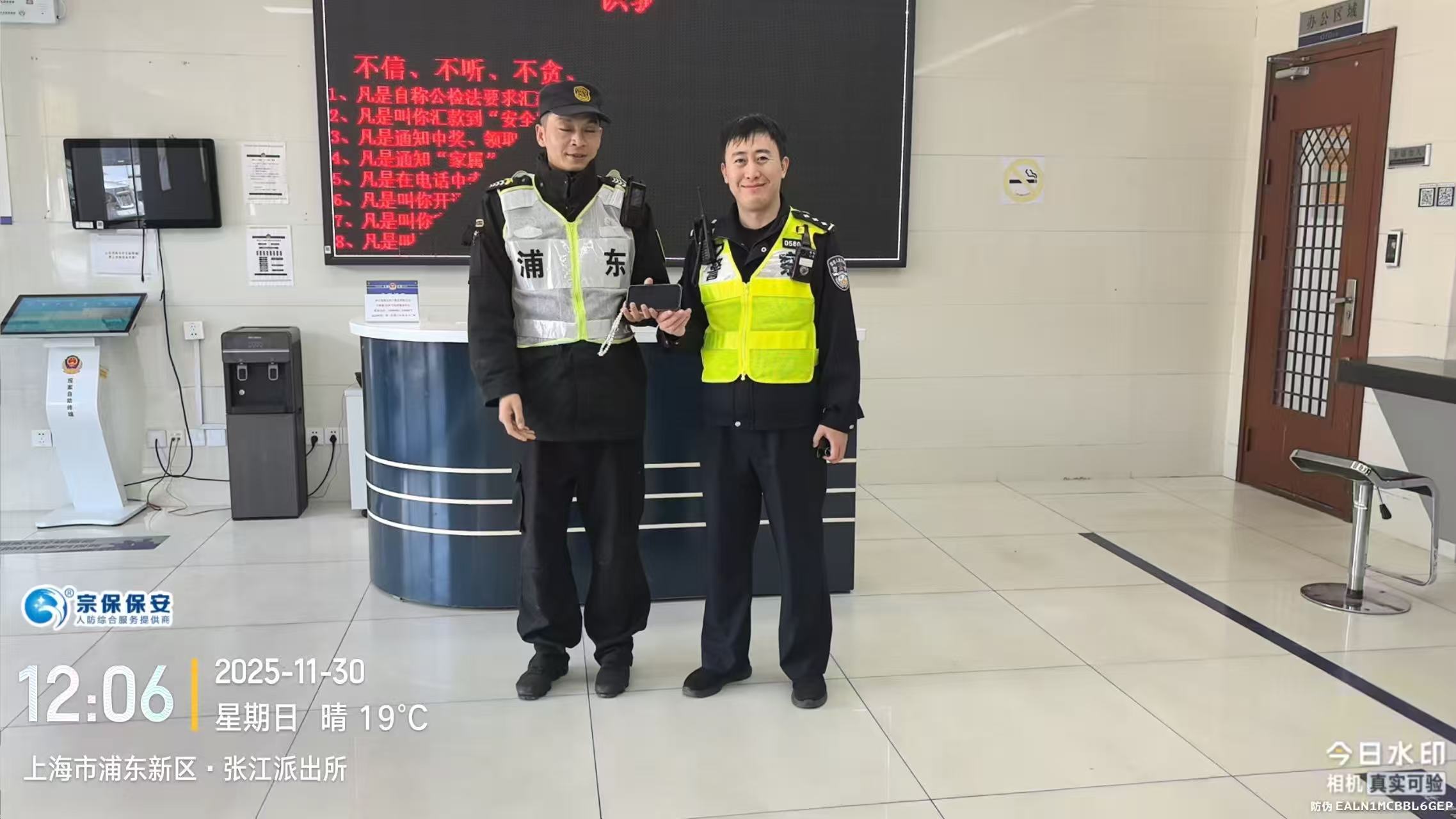 宗保公司駐浦東新區(qū)張江派出所輔助項目員工撿到蘋果手機上交民警