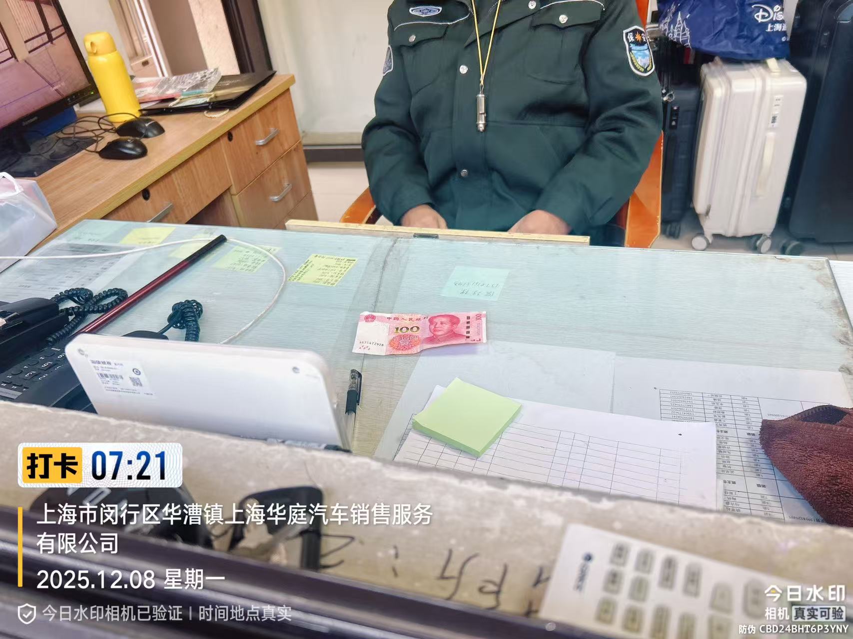 12月8日7:19,宗保公司駐閔行區(qū)華漕護校項目員工魏碩陽在執(zhí)勤期間撿到100元現(xiàn)金。詢問周邊家長和學生無人認領后,魏碩陽向項目負責人匯報,并按照指示將現(xiàn)金交到學校門衛(wèi)室。