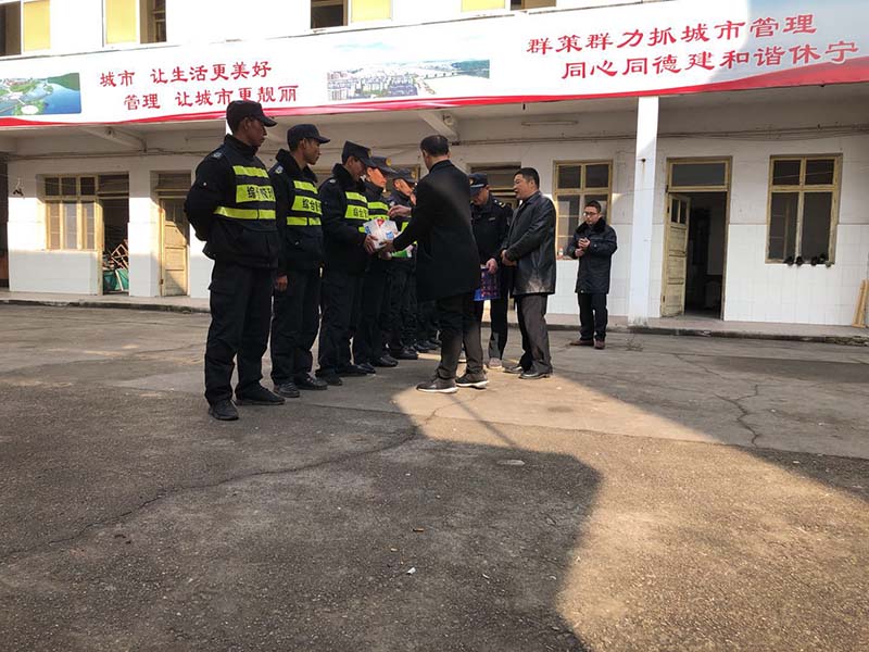 2019年2月1日,黃山市休寧縣城市管理行政執(zhí)法局汪局長(zhǎng)代表城管局,為春節(jié)留隊(duì)執(zhí)勤隊(duì)員發(fā)放慰問品