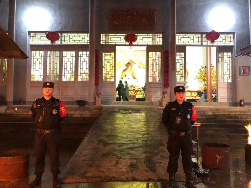 哪里需要保障安全,哪里就有宗保人的身影。春節(jié)除夕夜,宗保公司出動特保隊員1100多人次,在公安民警和甲方領導的帶領下,圓滿完成了21個寺廟(庵)的秩序維護保障臨保任務。