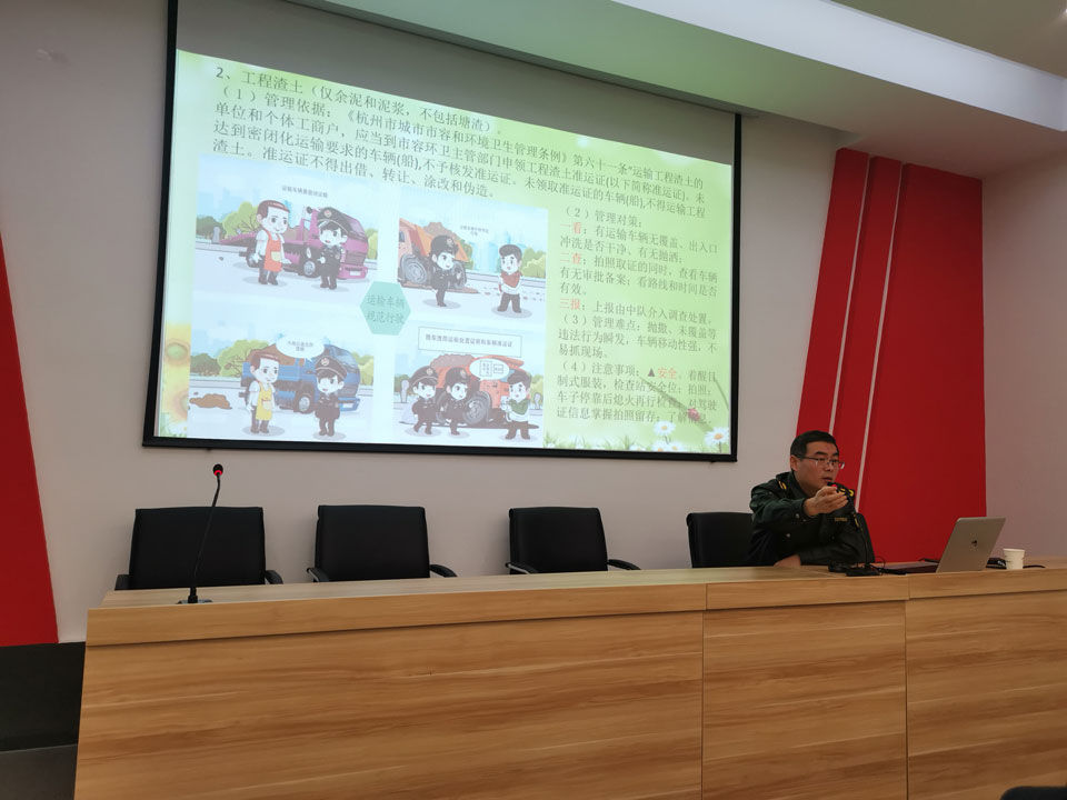 本次培訓(xùn),很榮幸地邀請(qǐng)到杭州市余杭區(qū)星橋城管劉隊(duì)長(zhǎng)擔(dān)任講師,對(duì)浙江民泰公司參與城市管理工作部分骨干、預(yù)提骨干及其他隊(duì)員進(jìn)行了全面的業(yè)務(wù)知識(shí)和法律法規(guī)培訓(xùn)。