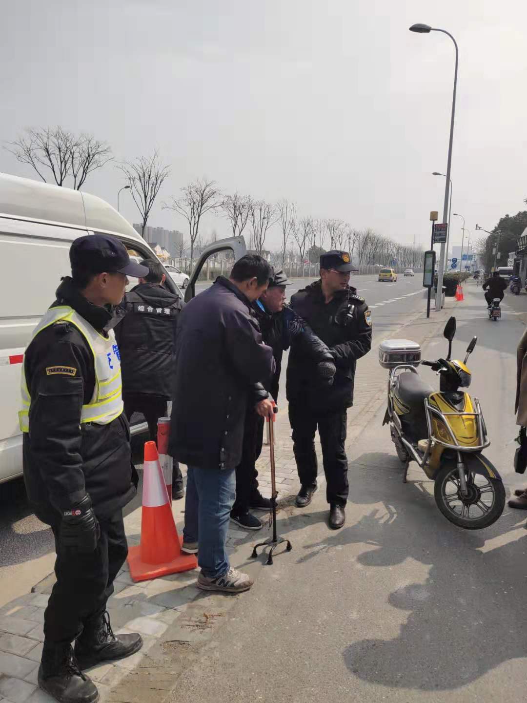 3月4日12:20左右,宗保駐三林市容隊(duì)員鄭全、李思昌巡邏至板泉路時,發(fā)現(xiàn)一名70多歲的老人躺在地上。小李立馬上前將老大爺扶起,并詢問老人情況。老大爺說自己是腦梗病發(fā)作,腿不能動而跌倒。小鄭和小李了解情況后,詢問老人是否需要送醫(yī)院,但老人拒絕去醫(yī)院。小李馬上幫忙聯(lián)系其家人。不一會兒,家屬騎著電瓶車來了。隊(duì)員考慮老人不能坐電瓶車,就安排車輛把老人送到家里。