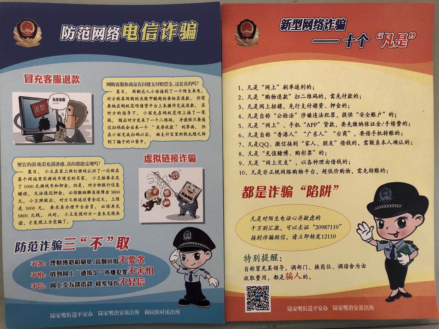 為預(yù)防和減少電信詐騙案件的發(fā)生,提高群眾防范電信、網(wǎng)絡(luò)詐騙意識(shí),陸家嘴治安派出所在3月份組織開(kāi)展防范電信詐騙宣傳月活動(dòng)。