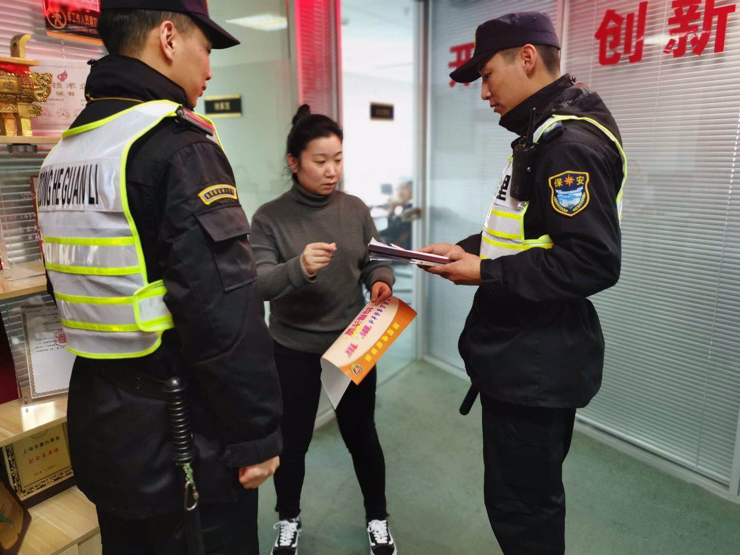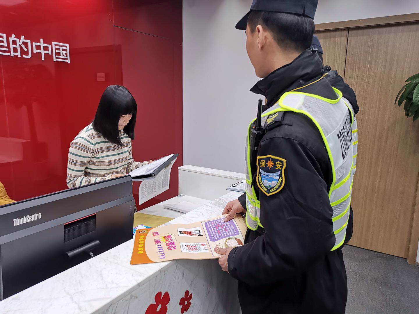 2019年3月22日,宗保駐陸家嘴項(xiàng)目余澤權(quán)走進(jìn)新大陸廣場(chǎng)某商鋪派發(fā)防范電信詐騙宣傳資料,受到商戶贊揚(yáng)。