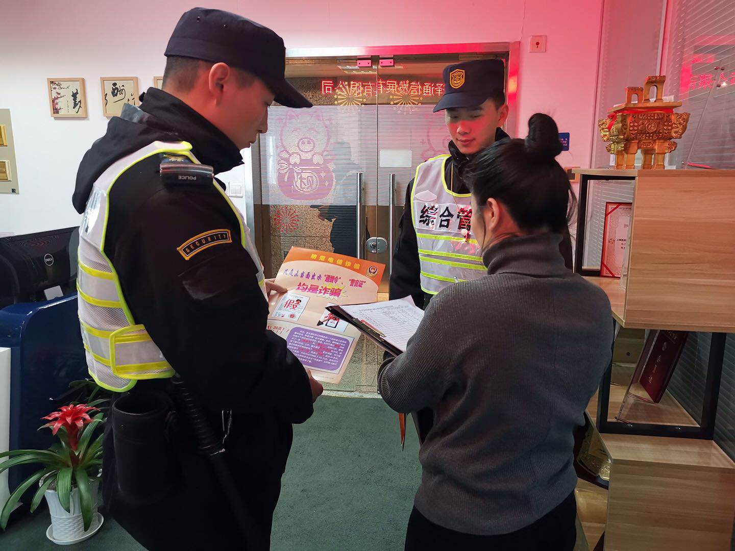 現(xiàn)場(chǎng)參加宣傳活動(dòng)的隊(duì)員還提醒商圈商家及樓宇物業(yè),不要輕易相信陌生來(lái)電,特別是以大型公司、公檢法等名義的來(lái)電。凡是涉及到金錢的問(wèn)題更需謹(jǐn)慎,不要輕易上當(dāng)。