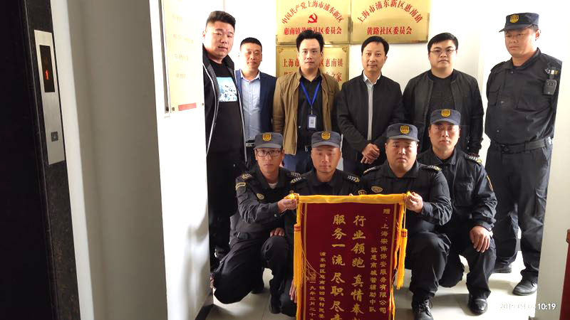 2019年4月2日,上?;菽湘?zhèn)四墩村朱書記、姚主任將一面繡有“行業(yè)領(lǐng)跑,真情奉獻(xiàn),服務(wù)一流,盡職盡責(zé)”的錦旗送到宗?;菽蠀^(qū)域經(jīng)理王鳳樓、市容隊(duì)長(zhǎng)王華奇的手中,對(duì)宗保駐惠南輔助隊(duì)伍在“美麗庭院”專項(xiàng)整治過(guò)程中的工作,給予了充分的肯定。