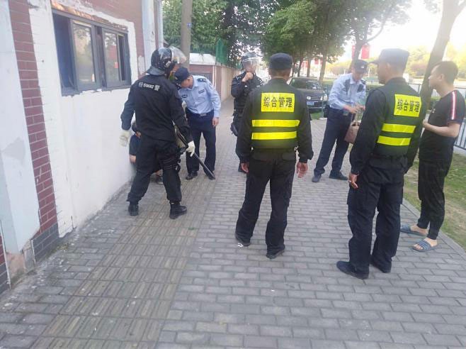當(dāng)日17:30左右,在高青路聯(lián)豐菜市場旁邊雜貨鋪,有位50多歲老太精神恍惚,向店鋪老板買刀過程中揚(yáng)言要?dú)⑷恕5昀习甯械绞虑椴幻?,恰巧碰到宗保公司?duì)員張治付巡邏到附近,立即將該情況告知小張。小張得知此信息后,迅速上報(bào)帶班組長并報(bào)警,班組長接到報(bào)備迅速上報(bào)三林項(xiàng)目負(fù)責(zé)人。當(dāng)時(shí)情況緊急,正是下班高峰期,加上菜場人流大,兩名特警與兩名民警加上三名宗保隊(duì)員,大約十分鐘左右在人群中鎖定了老太,將其驅(qū)趕偏僻人少的地方,控制住拿下兇器。
