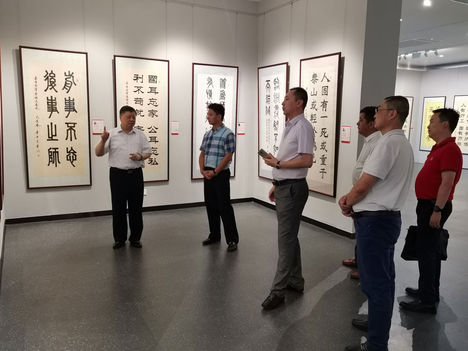 8月31日,宗保公司馮中保董事長(zhǎng)率領(lǐng)公司部分高管來到金橋碧云美術(shù)館,參觀“百位歷史名人,醒世名言警句”童世平將軍書法展。