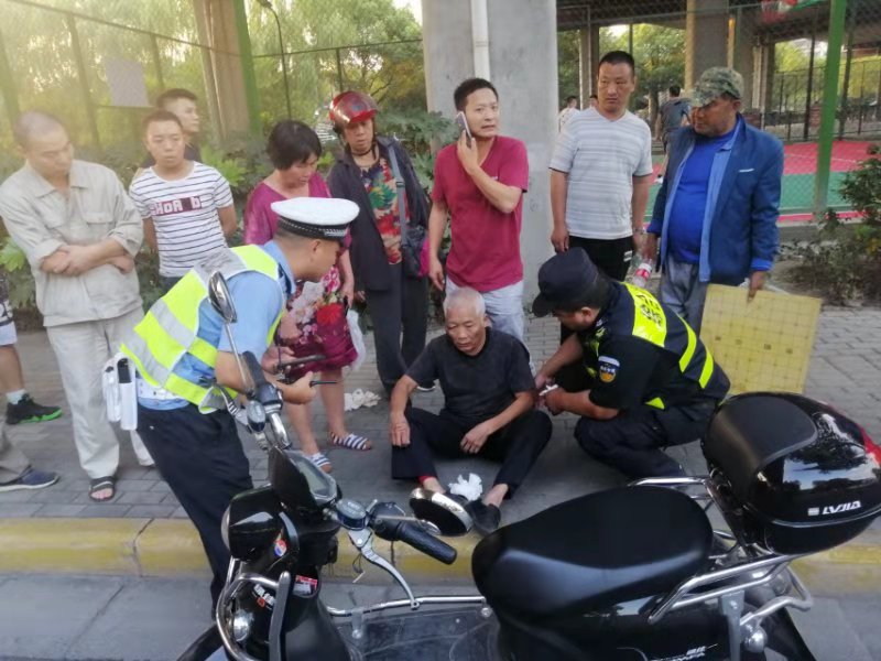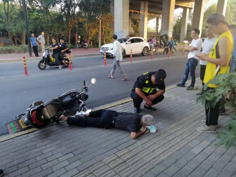 當天下午16:50左右,小張像往常一樣緊張有序地執(zhí)勤,當巡查到紅豐立交橋崗位時看到前面一群人圍觀,第一反應(yīng)可能出事了。小張急忙走上前,只見一位大爺騎電車摔倒在地。