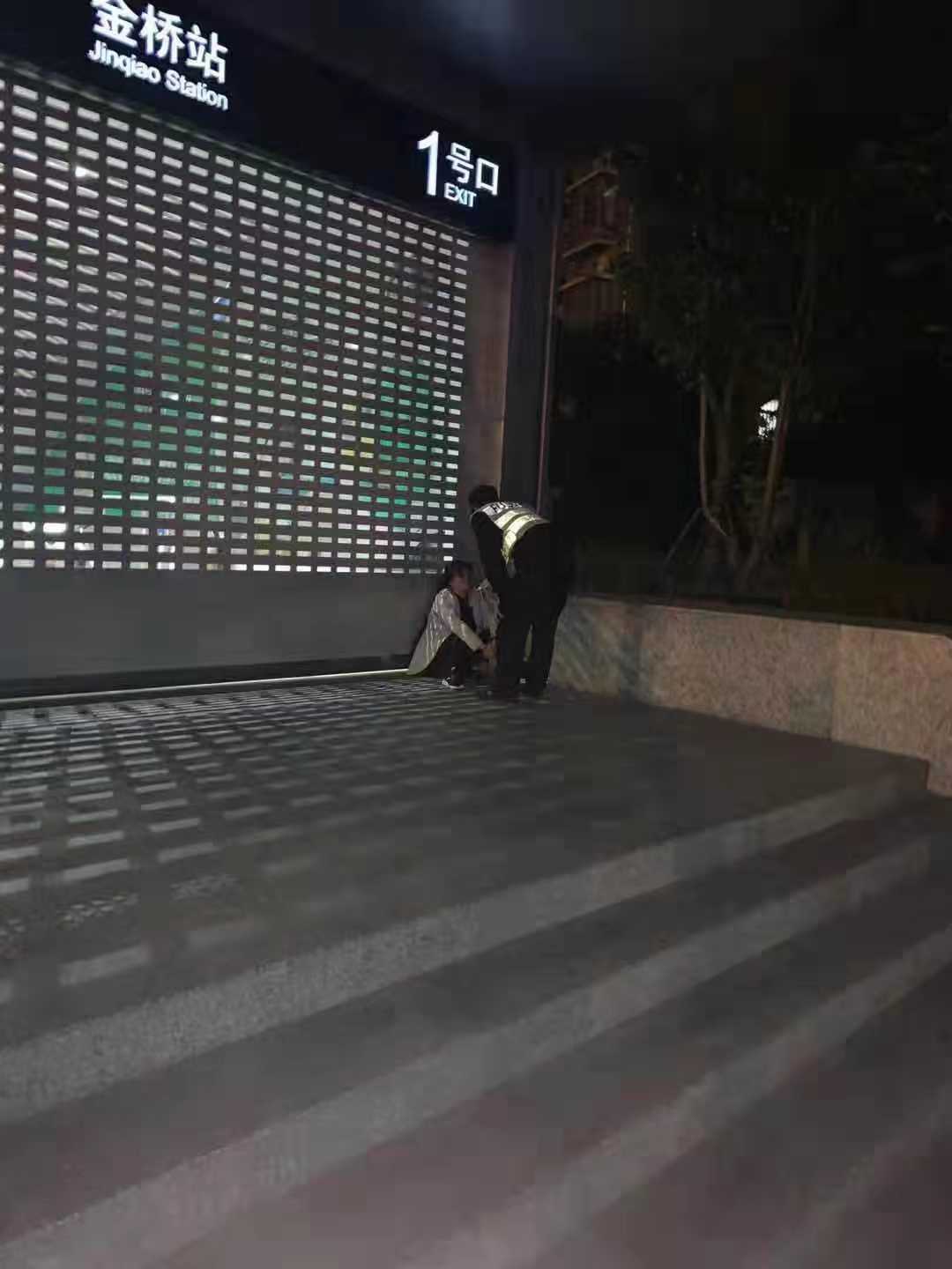 10月24日凌晨1點(diǎn)左右,街上的行人漸漸少了,喧鬧的城市已然安靜。宗保公司駐金橋輔警項(xiàng)目夜班組的李丙藝、朱洪運(yùn)、閆洲通三人像往常一樣堅(jiān)守在崗位上,當(dāng)巡邏至9號(hào)線金橋地鐵站1號(hào)口時(shí),發(fā)現(xiàn)一名女子在低聲哭泣,三人立馬上前詢問情況,原來該女子只知道坐地鐵到哪一站下車回家,根本不知道家里具體位置,而當(dāng)時(shí)9號(hào)線地鐵已停運(yùn)。李丙藝立馬上報(bào)組長前來處理,當(dāng)班組長將情況上報(bào)金橋所值班領(lǐng)導(dǎo),和民警一起趕赴現(xiàn)場問清楚情況后,朱洪運(yùn)和閆洲通繼續(xù)巡邏工作,李丙藝和當(dāng)班組長隨民警將該女子帶到輔警東陸路辦公室進(jìn)行登記備案。