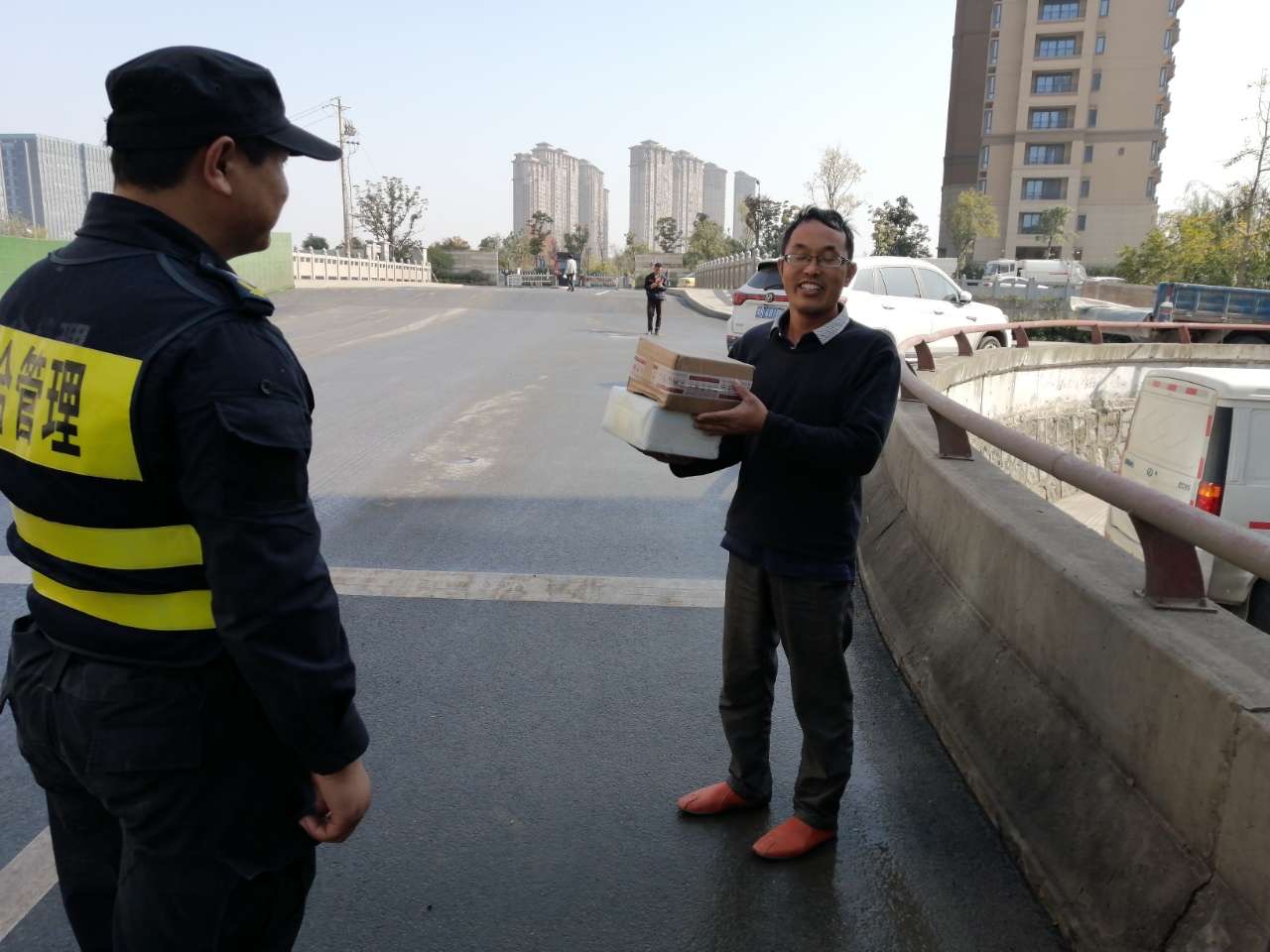 2019年11月19日上午10:35左右,浙江民泰駐閑林市容項目隊員周大蔣、薛海清在巡查至閑富中路時,發(fā)現(xiàn)路邊有兩個遺落的快遞包裹,詢問周邊群眾無人認領(lǐng)。