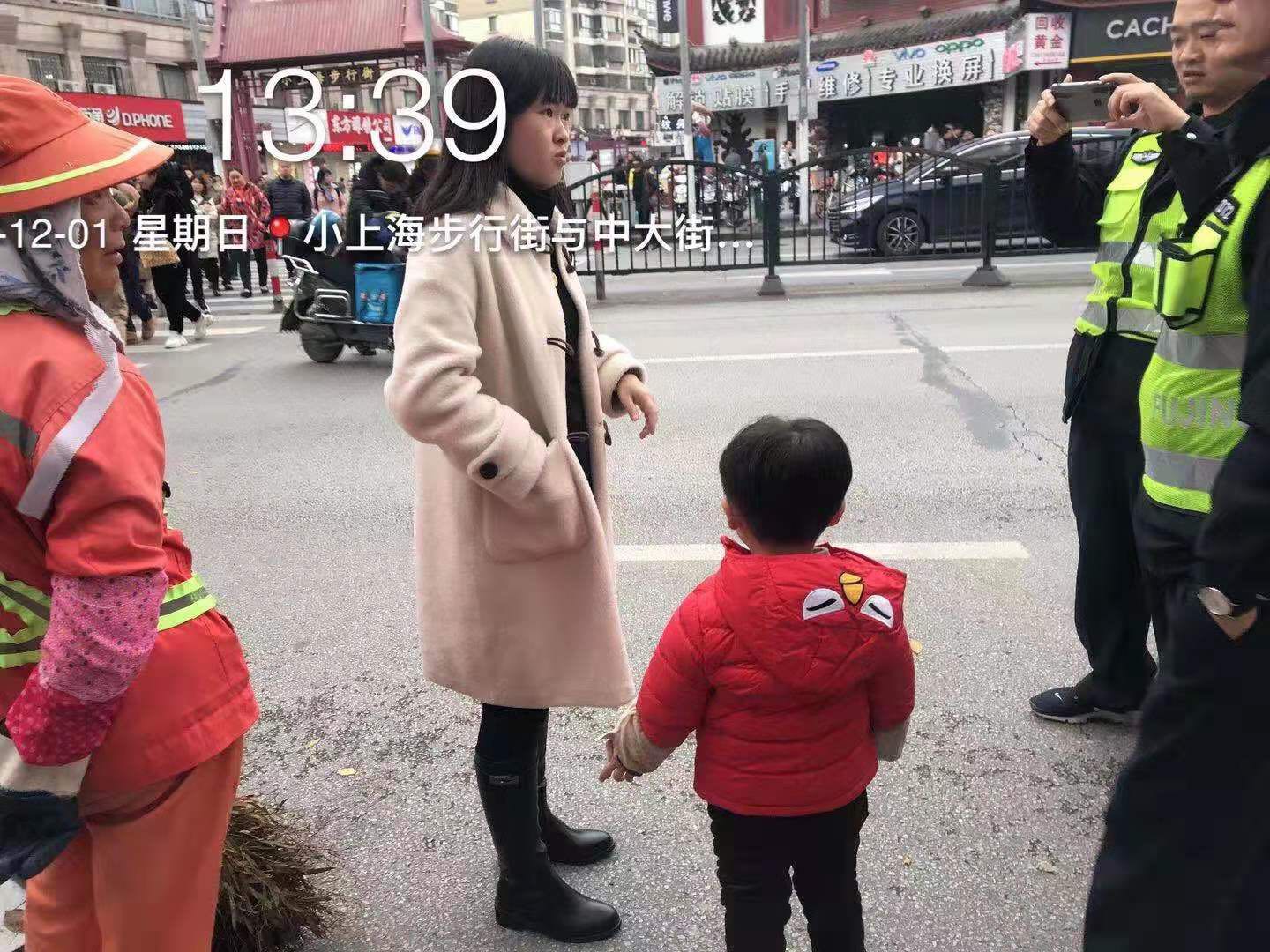 12月1日,周浦輔警隊(duì)員王云強(qiáng)13:22分巡邏至步行街121號(hào)正新雞排店門口時(shí),發(fā)現(xiàn)一個(gè)小男孩一直在哭泣,旁邊沒有家長(zhǎng)看護(hù)。于是,就上前詢問(wèn),得知小男孩和媽媽一起出來(lái)逛街,自己只顧玩,走著走著就找不到媽媽了,所以急得哭了起來(lái)。