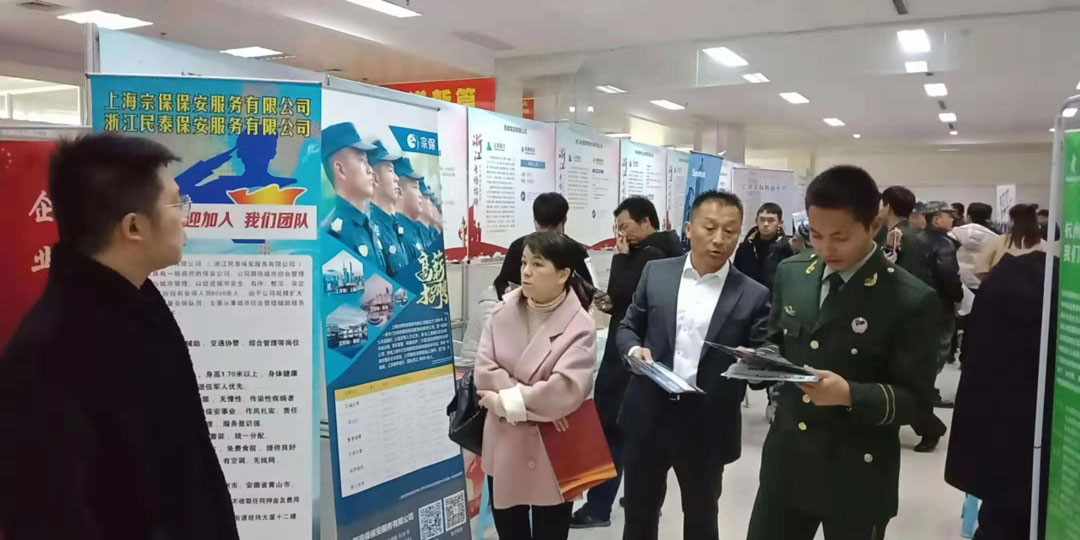 12月13日,長三角地區(qū)退役軍人浙江專場招聘會上,上海宗保保安服務有限公司的攤位被前來咨詢的退役軍人圍得水泄不通,公司副總經(jīng)理侯留勇耐心地介紹著崗位情況。
