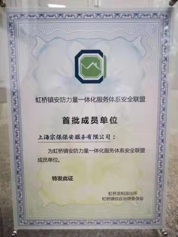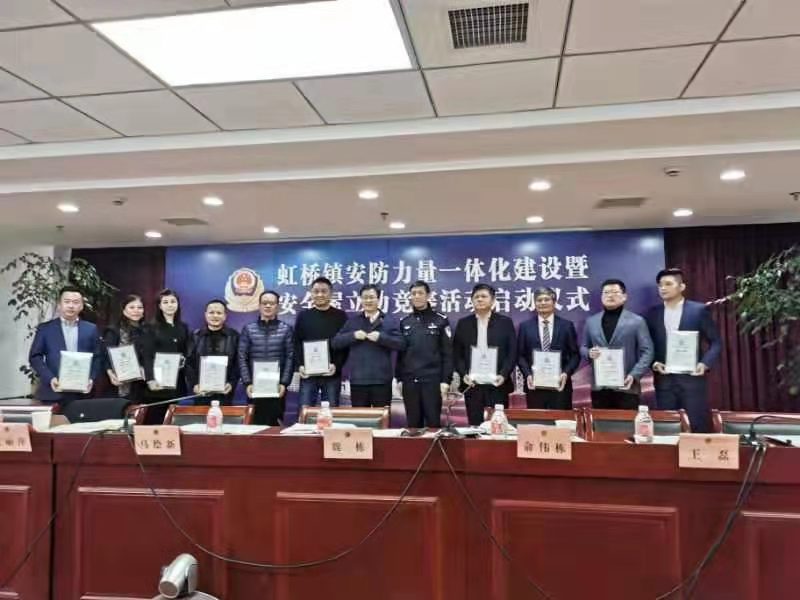 2019年12月31日,閔行虹橋龍柏派出所召開虹橋鎮(zhèn)安防力量一體化建設(shè)暨安全屋立功競賽活動啟動儀式。虹橋鎮(zhèn)政府馬繪新書記、虹橋龍柏派出所相關(guān)領(lǐng)導(dǎo)、宗保公司副總經(jīng)理杜明杰、虹橋鎮(zhèn)知名企業(yè)的負責(zé)人等出席了此次啟動儀式。