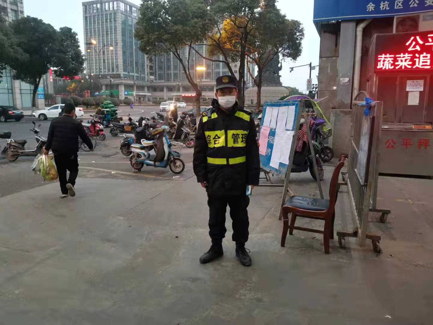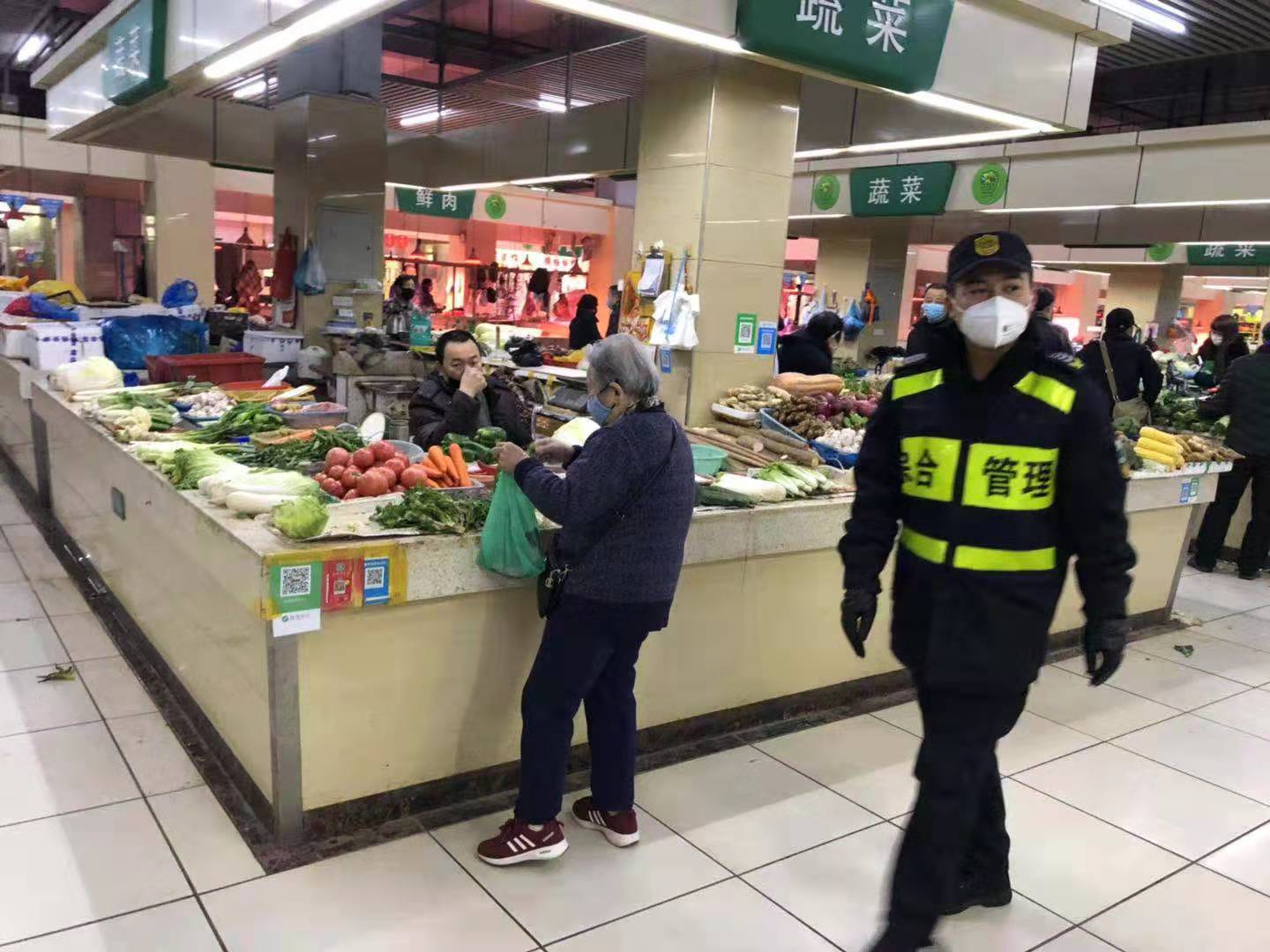 疫情防控中,王兵與隊(duì)友一起配合城管隊(duì)做好菜場(chǎng)周邊的疫情防控工作,開(kāi)展菜市場(chǎng)巡查,檢測(cè)進(jìn)入菜場(chǎng)人員的體溫,查處活禽交易,宣傳疫情防控知識(shí)等。