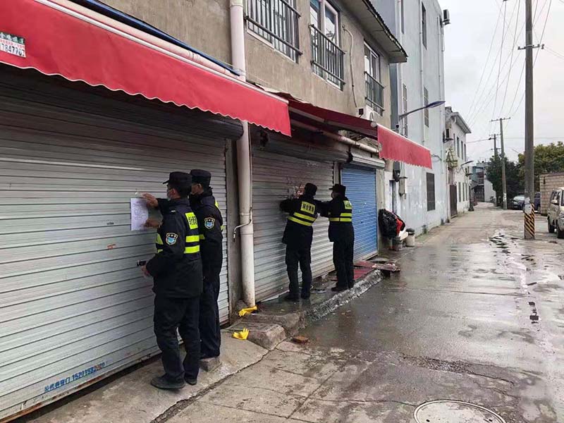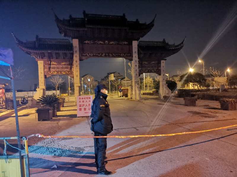 堅(jiān)守在惠南鎮(zhèn)小區(qū)門口