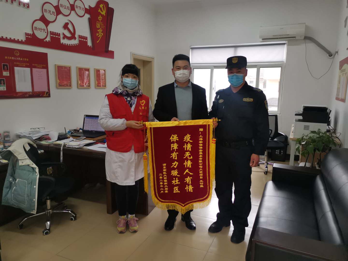2月28日,浦東新區(qū)大團(tuán)鎮(zhèn)南大居委送來(lái)一面錦旗,贊揚(yáng)公司駐大團(tuán)市容項(xiàng)目在疫情防控中的工作表現(xiàn),對(duì)全體隊(duì)員表示感謝。