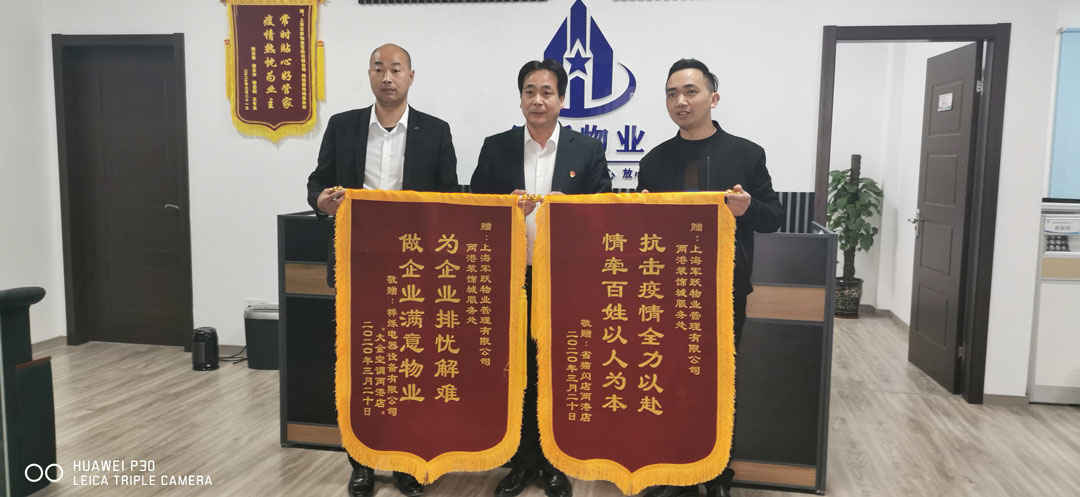 兩面錦旗既是對公司駐兩港裝飾城員工們工作的肯定,又是對大家的鞭策和激勵。公司駐兩港裝飾城員工們將不負眾望,再接再厲,開展精細化管理,提供優(yōu)質化服務;將與全體業(yè)主一道并肩作戰(zhàn),共同做好疫情防控,為業(yè)主健康平安保駕護航。