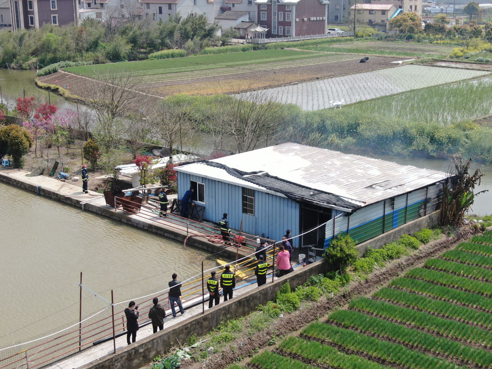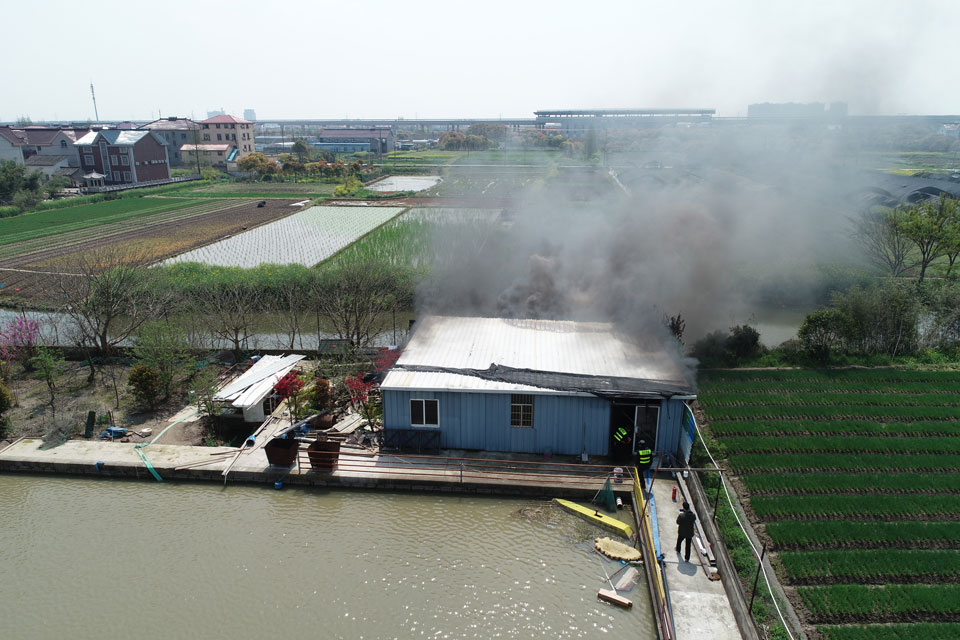 4月1日上午,宗保公司的無人機(jī)飛手王凱奇、王鵬飛在浦東新區(qū)宣橋鎮(zhèn)一地塊上空?qǐng)?zhí)行無人機(jī)三維建模航拍任務(wù),無人機(jī)在返航過程中發(fā)現(xiàn)該地塊有一處臨時(shí)搭建的房子冒著濃煙?!安缓茫i飛,稻田旁邊的房子像是著火了,趕快通知地塊看守的隊(duì)員先去看看情況?!蓖鮿P奇一邊穩(wěn)穩(wěn)地操控著無人機(jī),一邊焦急地對(duì)身邊的王鵬飛說。