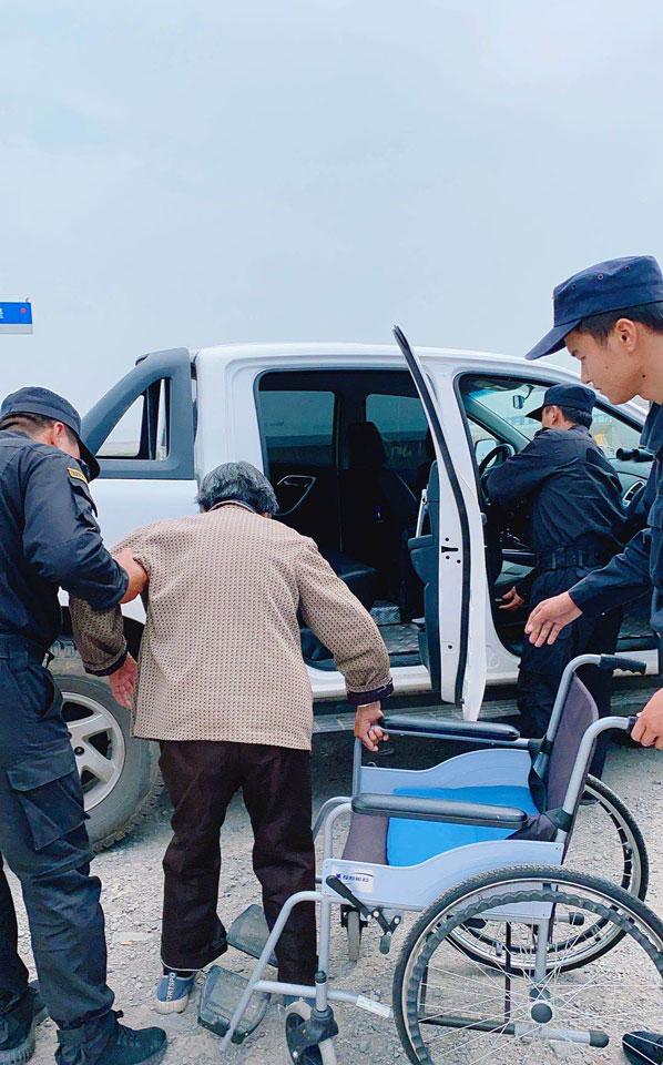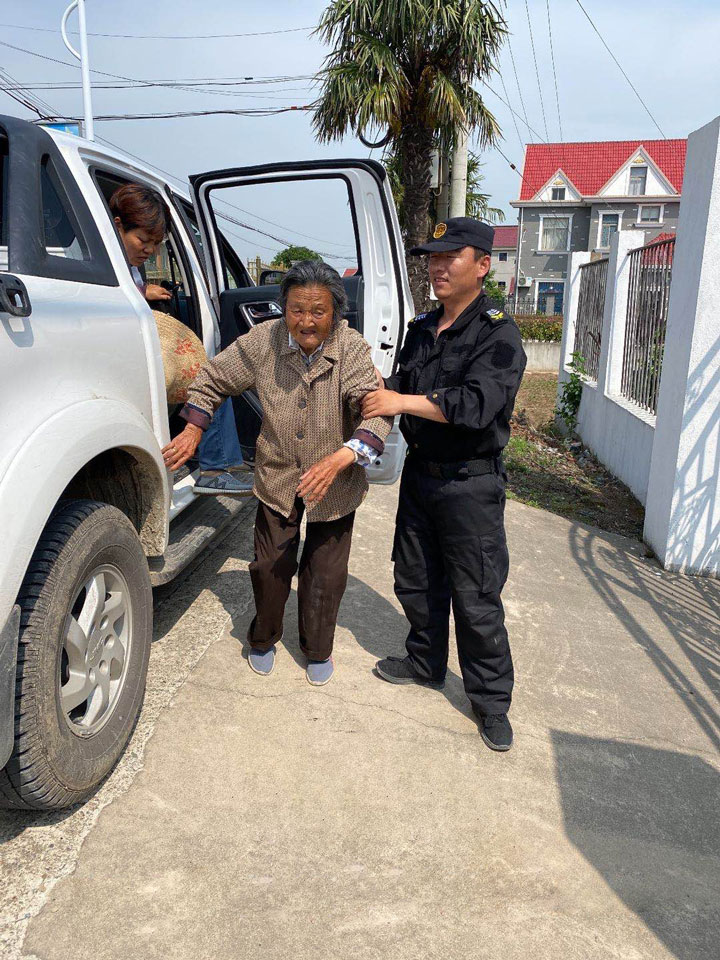 5月17日13:50,宗保公司駐崇明橫沙東灘項目馬成龍、馬志鵬等四名隊員,在巡邏途中發(fā)現(xiàn)一位坐著輪椅的老奶奶,東張西望,走走停停。憑借長期的工作經驗,幾位隊員斷定老奶奶可能是迷路了,而且家不會離得太遠。