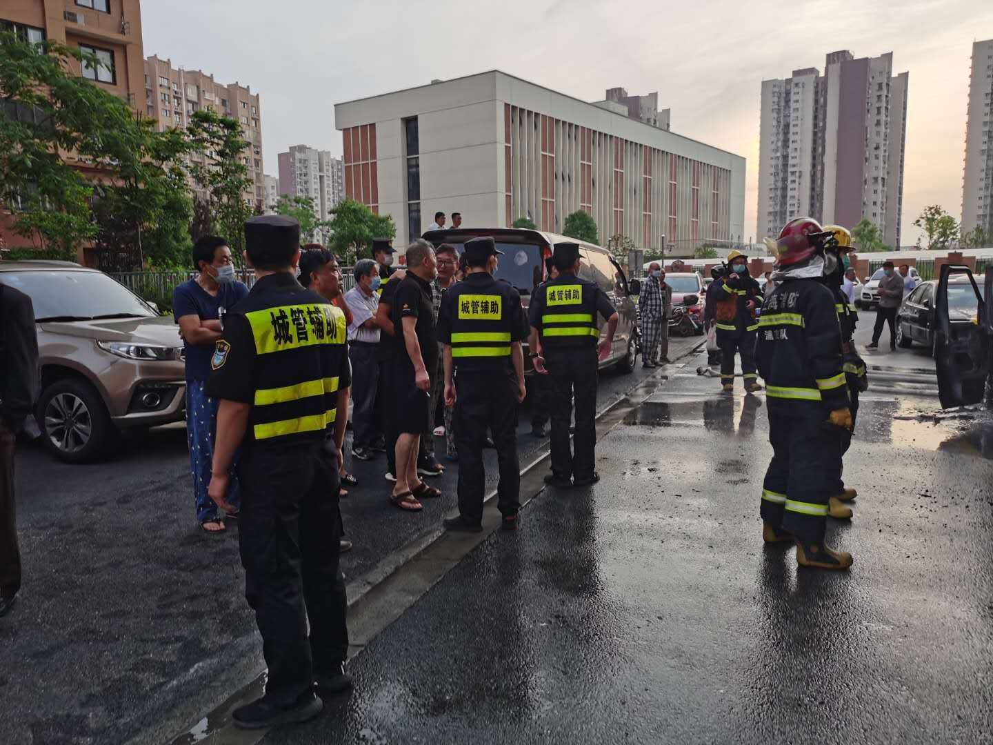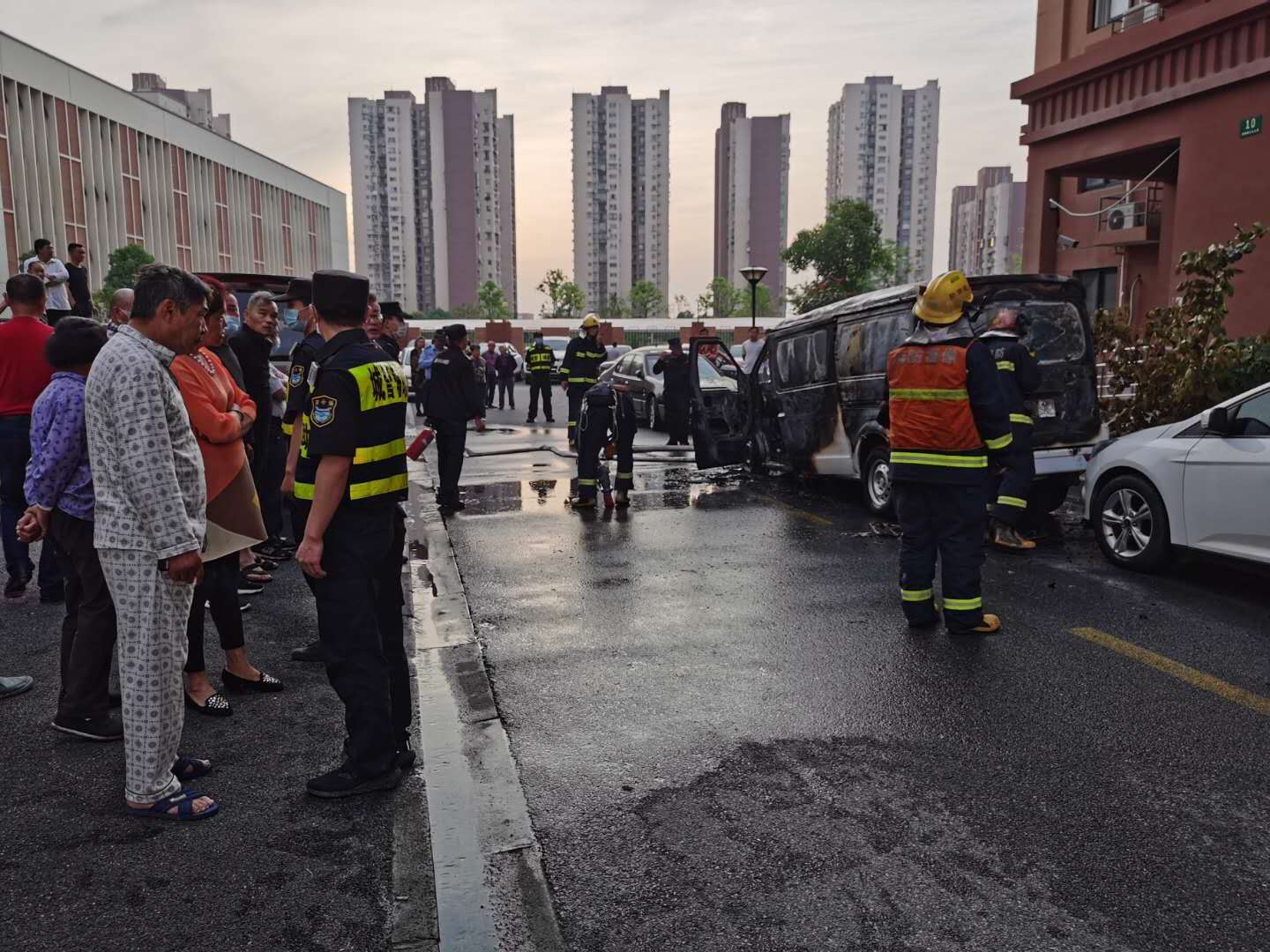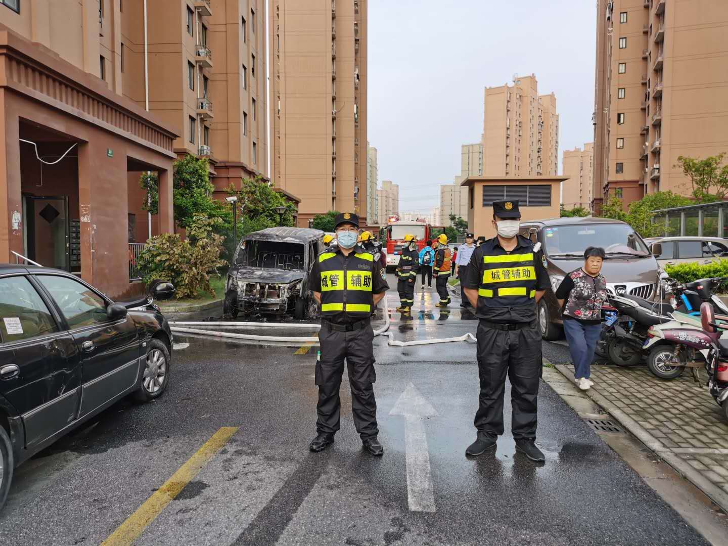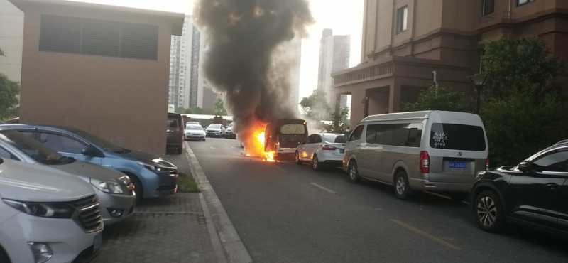 6月2日4:40,宗保公司駐周浦市容項目隊員胡德良在周陽路泰豐里小區(qū)巡邏時,發(fā)現(xiàn)一輛新能源汽車起火,現(xiàn)場濃煙滾滾,火勢較大。而且旁邊還停有幾輛汽車,一旦發(fā)生爆燃,后果不堪設想。事不宜遲小胡急忙撥打119報警,并向當班組長報告要求前來支援。