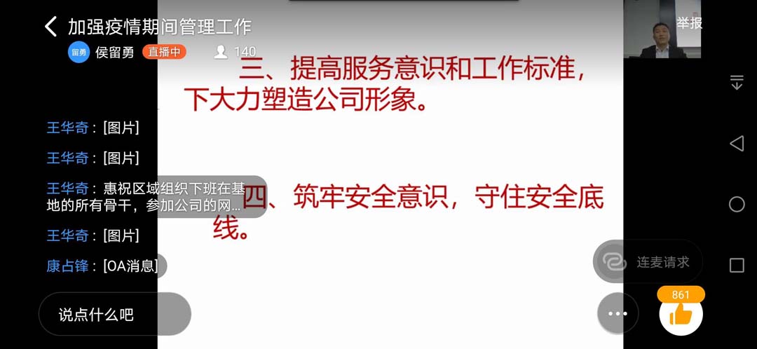 4月3日,副總經(jīng)理侯留勇授課《如何抓好疫情期間的管理工作》